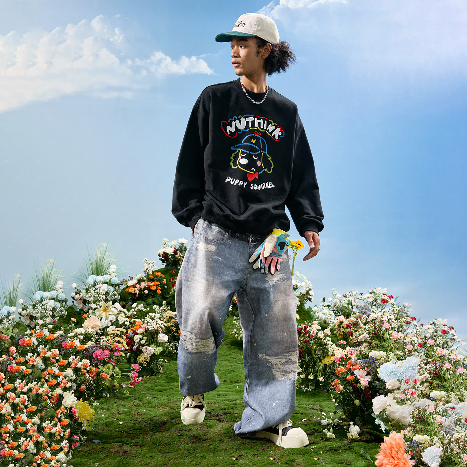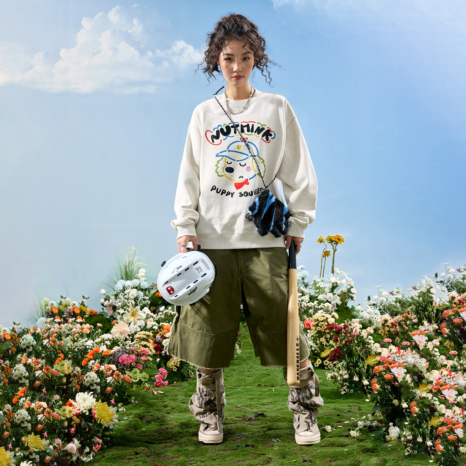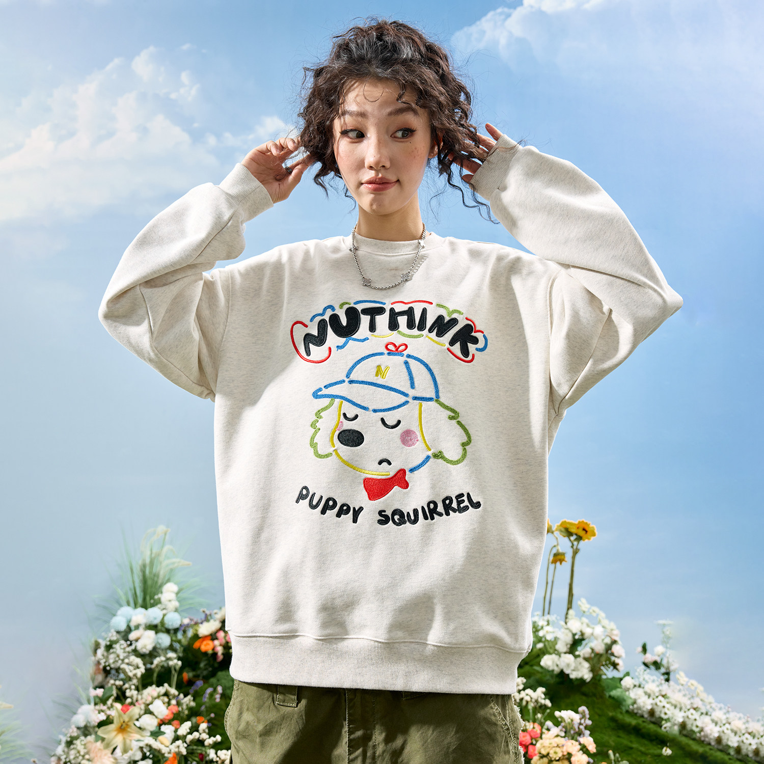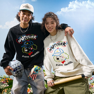 Nuthink多巴胺珍珠圆领卫衣字母重磅潮牌宽松情侣男女2025冬新款