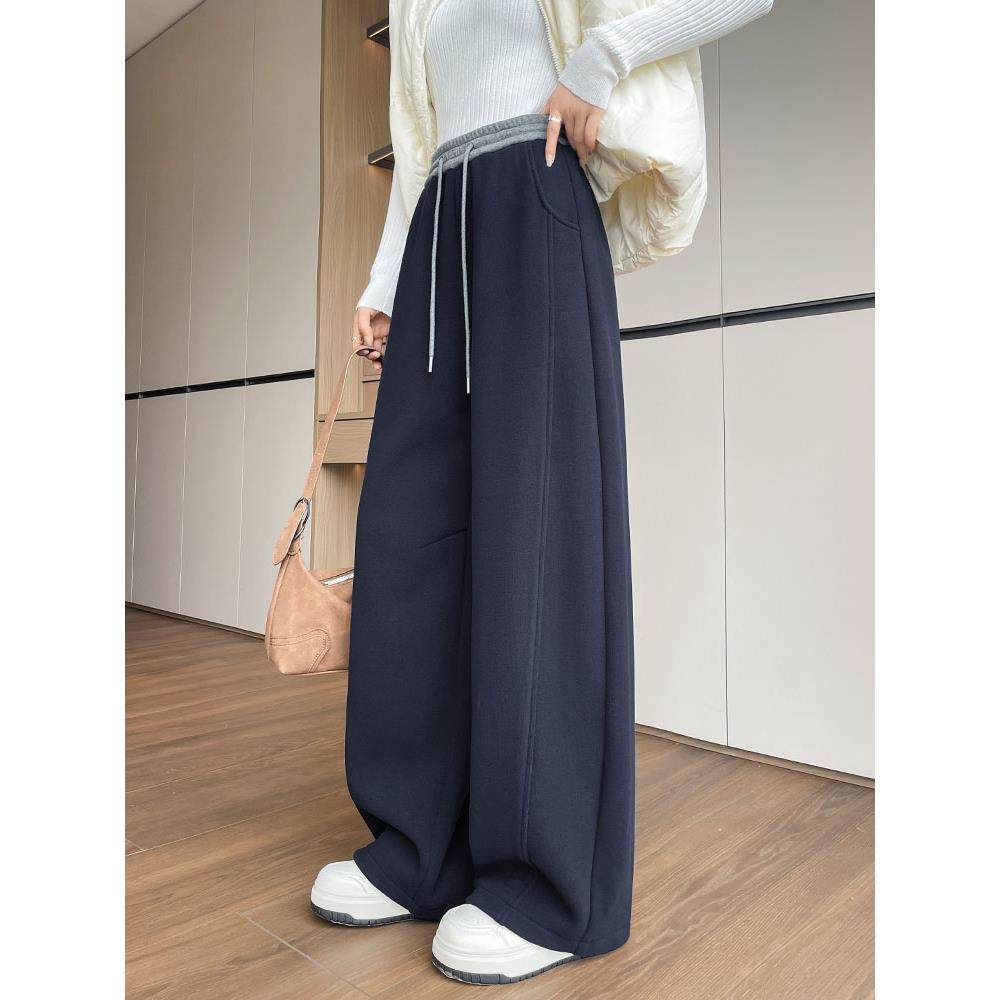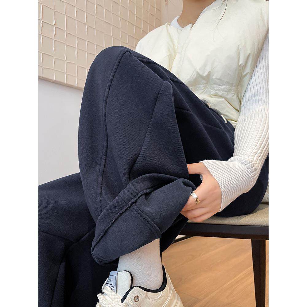 简约休闲慵懒风加绒加厚保暖阔腿裤 IEF 新款 子2025冬季 爱依服裤