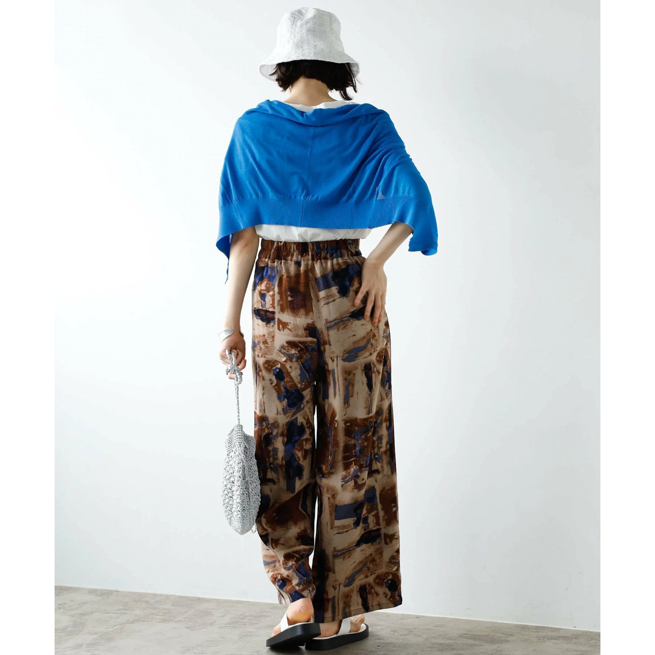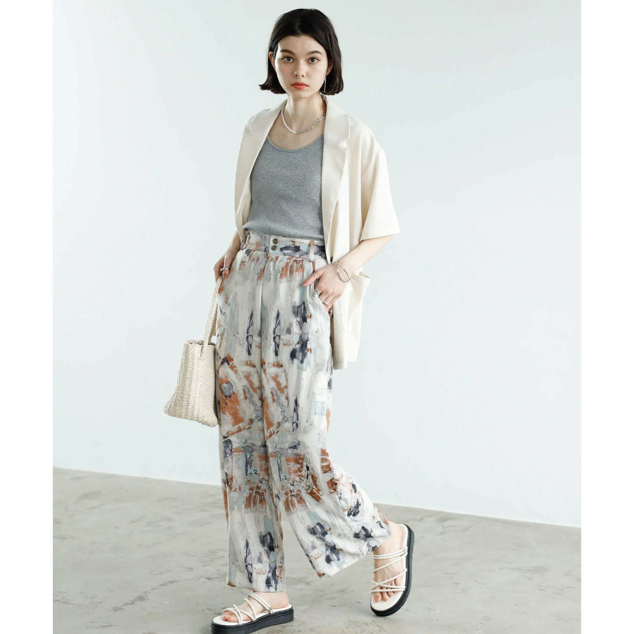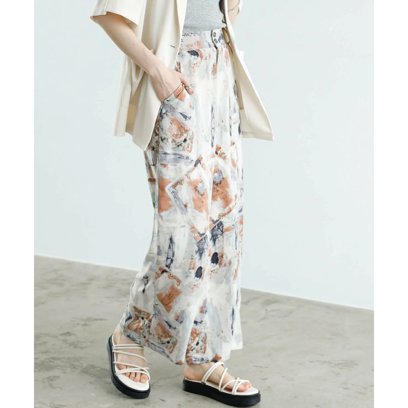 两粒扣半松紧腰扎染直筒雪纺休闲裤 个性 女31505 时尚 日单春夏新款