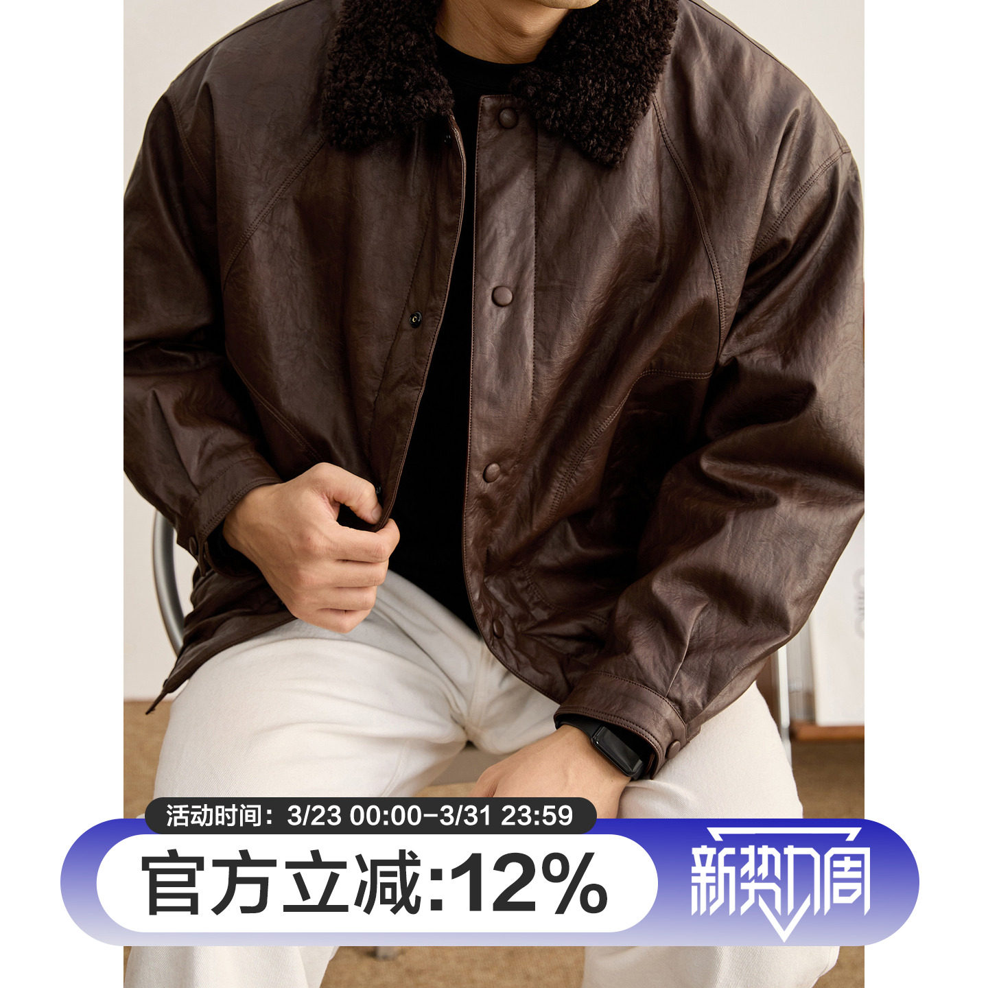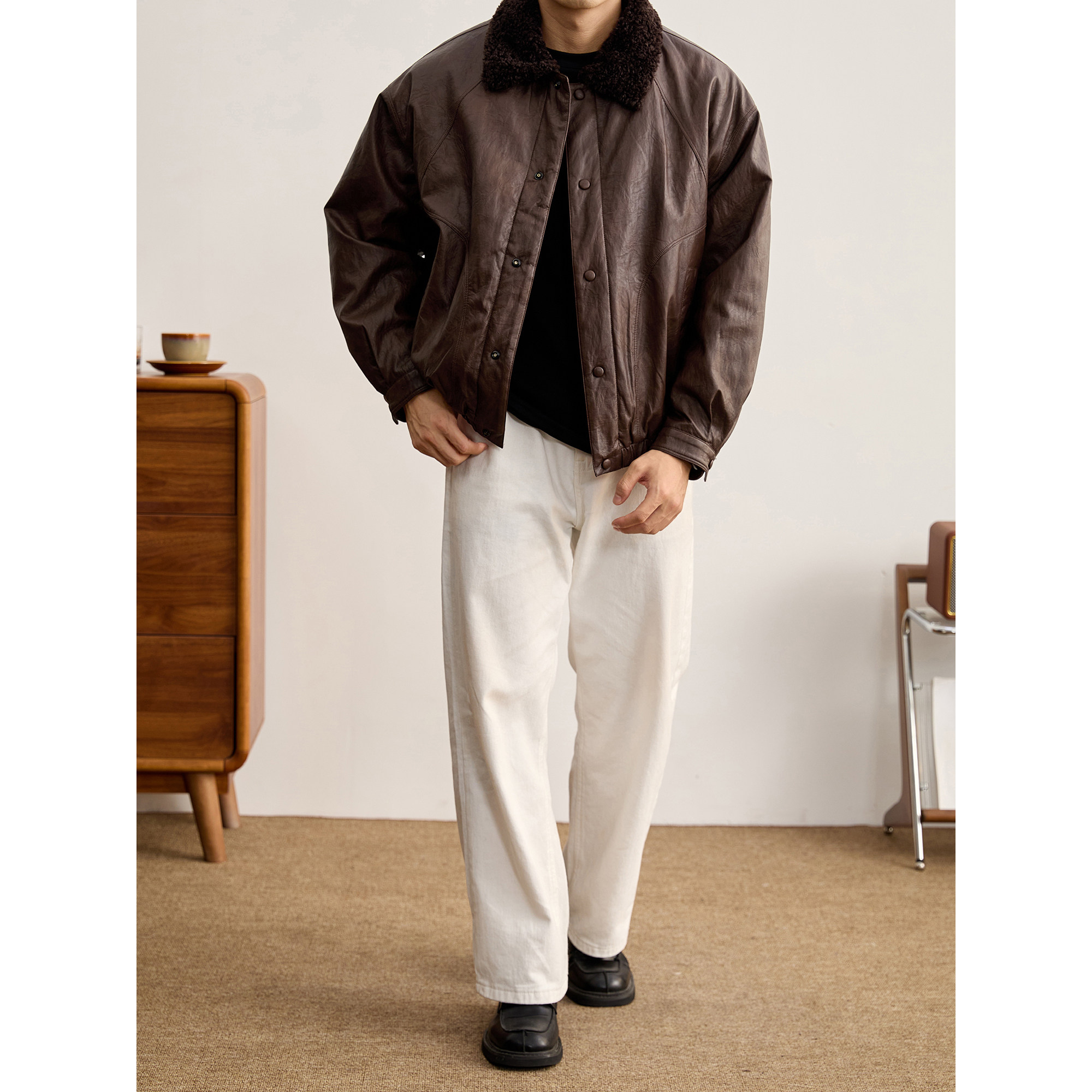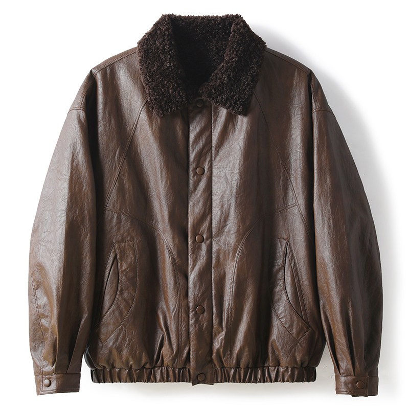 LUUD 加厚保暖内里加绒羊羔毛领皮衣外套男皮毛一体PU皮夹克 冬季