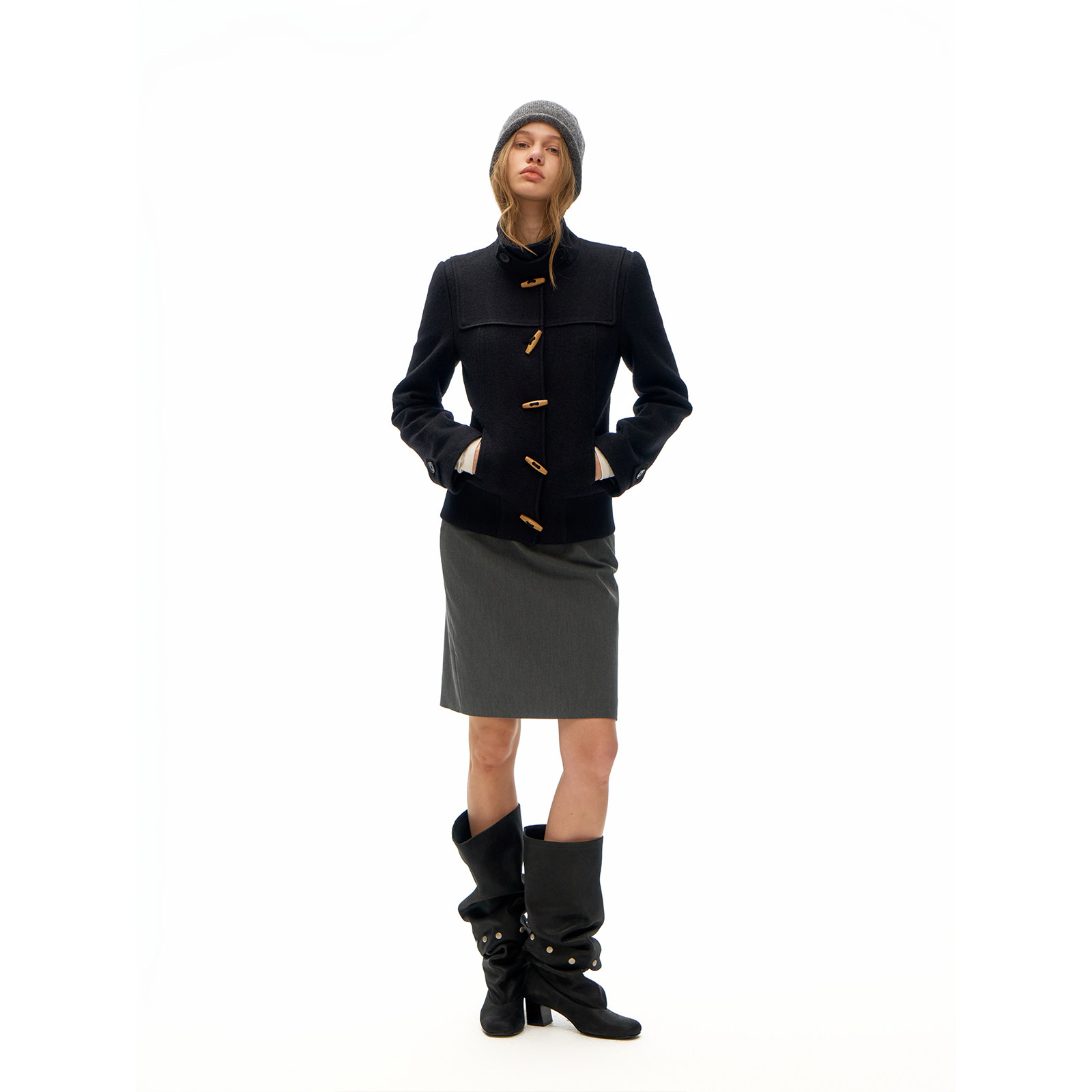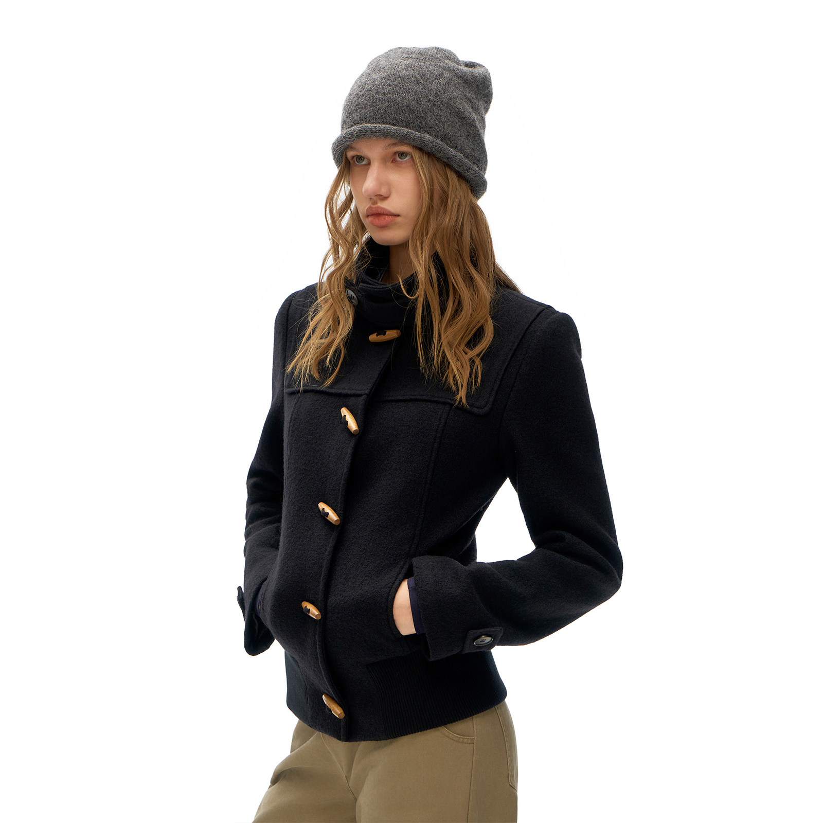 修身 摇粒绒内衬 正肩牛角扣毛呢外套 day立领全羊毛 call