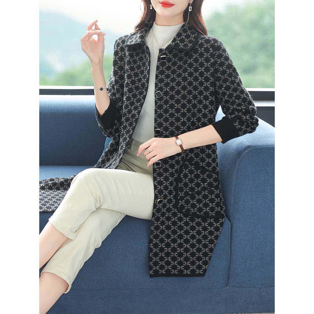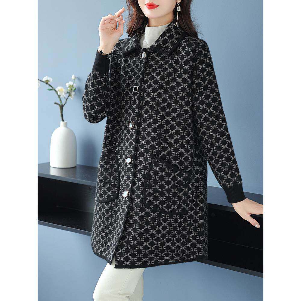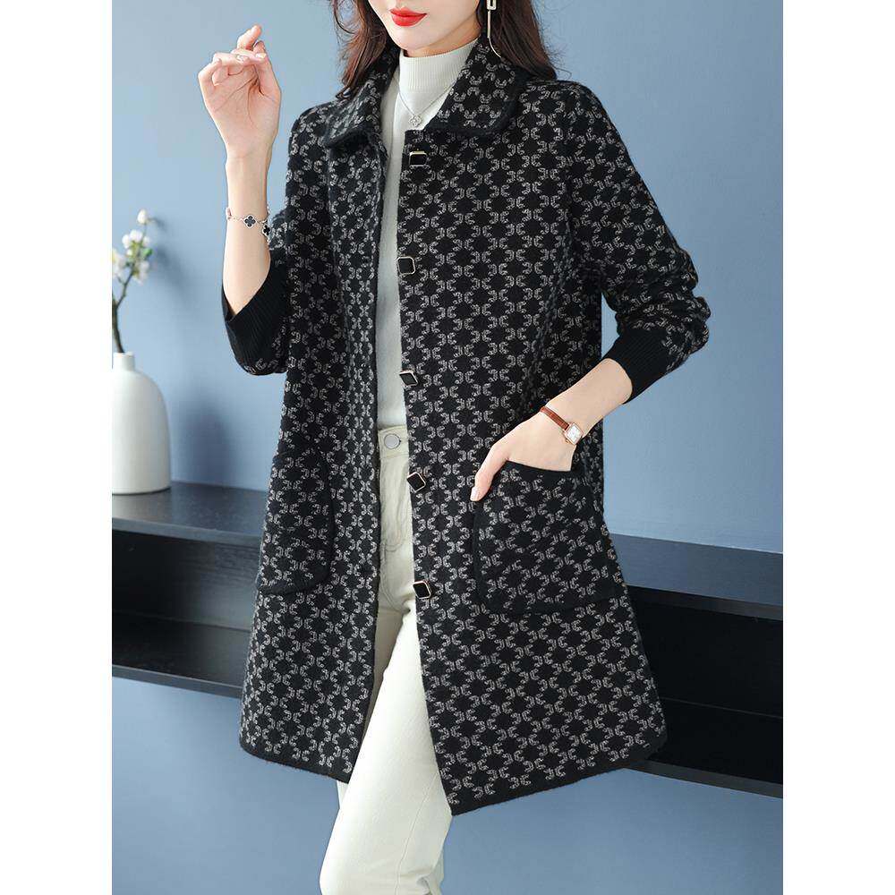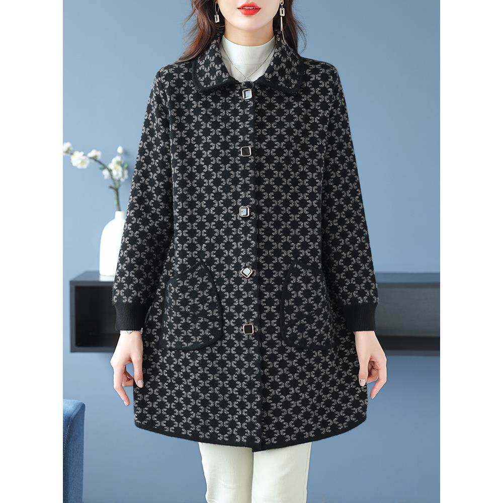 胖妈妈秋冬女士中长款 宽松毛呢外套 双面羊绒大衣中老年加肥加大码