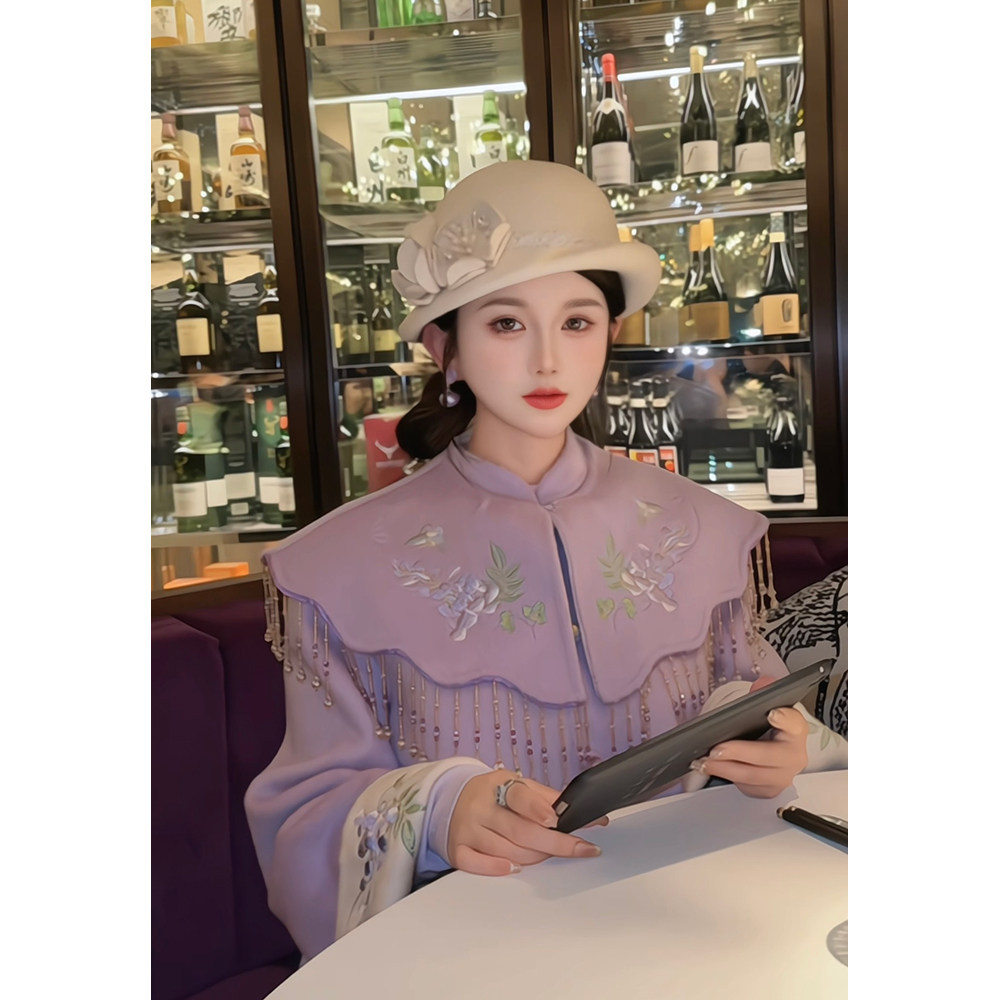 郭郭原创100羊毛重工刺绣双面昵大衣双色羊毛外套 槿上花语