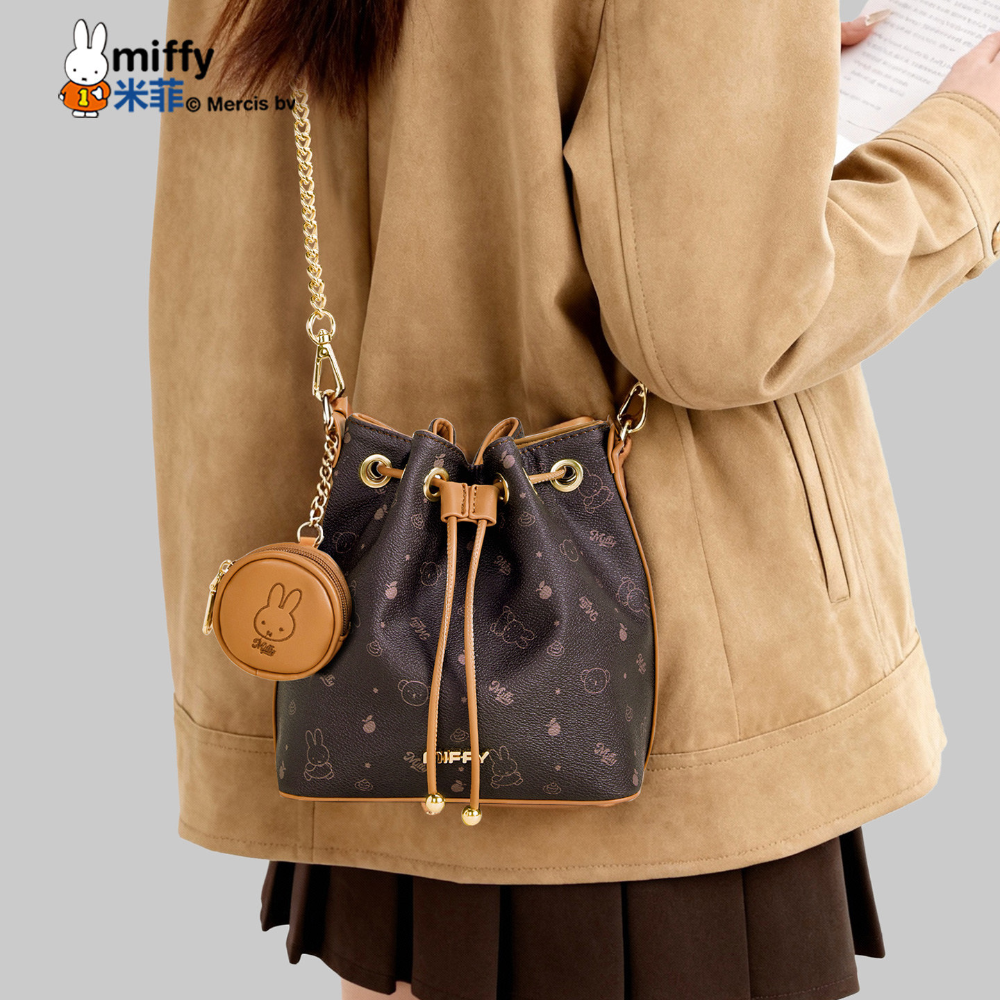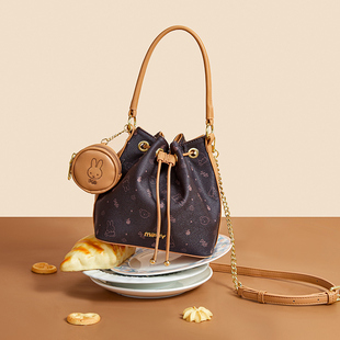 米菲印花水桶包女2025年新款 高级感日常通勤链条单肩斜挎包手提包
