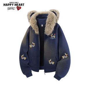 外套美式 四时花境花瓣刺绣帽衫 嘻哈连帽卫衣男女 Achock官方店