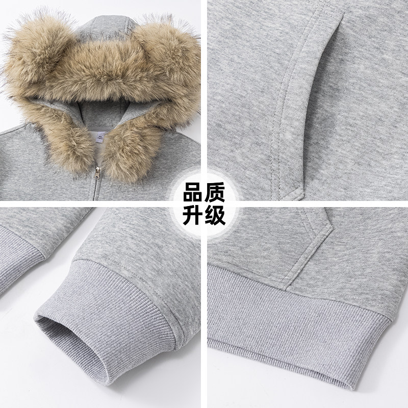 外套 翻领半拉链设计感ins薄款 灰色中性风大码 卫衣女春秋2024新款