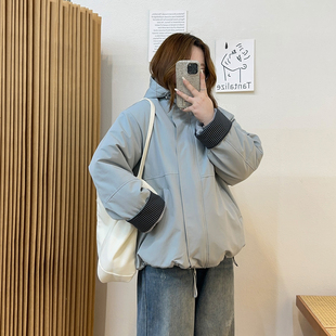 工装 复古夹棉加厚棉服女秋冬新款 派克服外套潮 胖mm美式 300斤大码