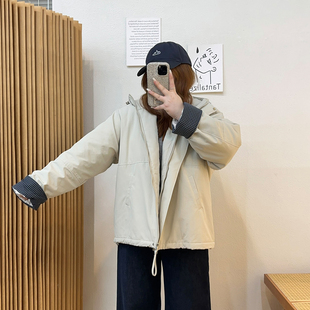 厚外套大码 秋冬季 男女加绒加棉连帽宽松棉衣大衣工作服罩衣长款
