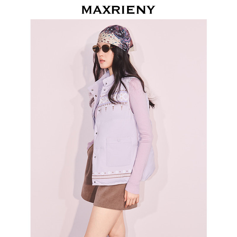 MAXRIENY防风立领羽绒服千金马夹25冬款 费尔岛纹样北欧风马甲背心