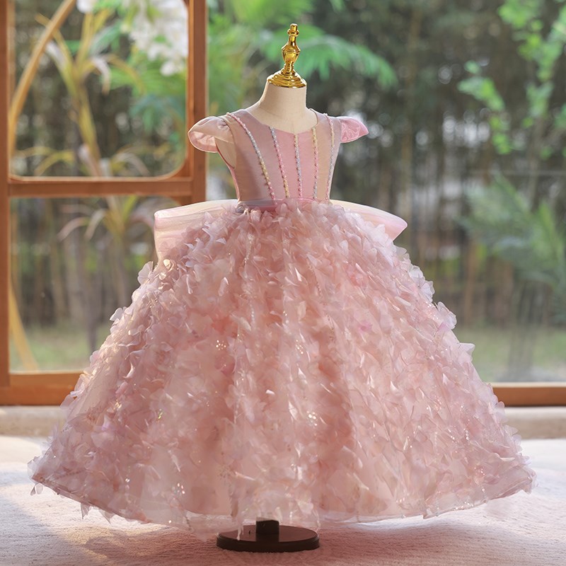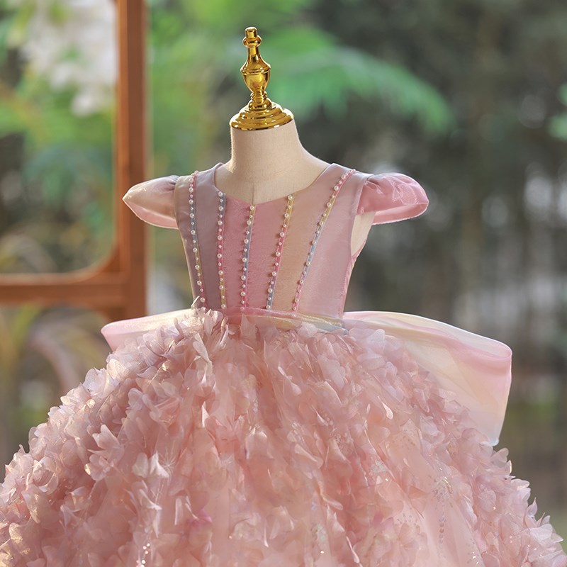 儿童主持人礼服女童公主裙粉色仙气花童裙小女孩生日宴钢琴演出服