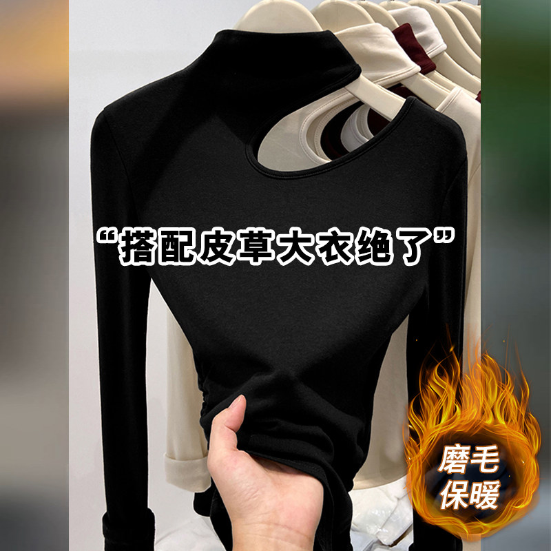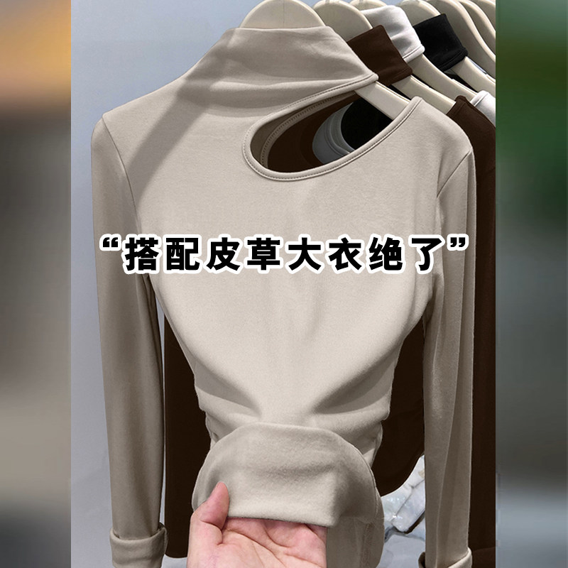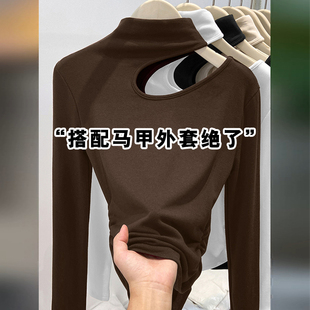 锁骨露肩高级感上衣 秋冬内搭时尚 半高领镂空针织打底衫 女2025新款