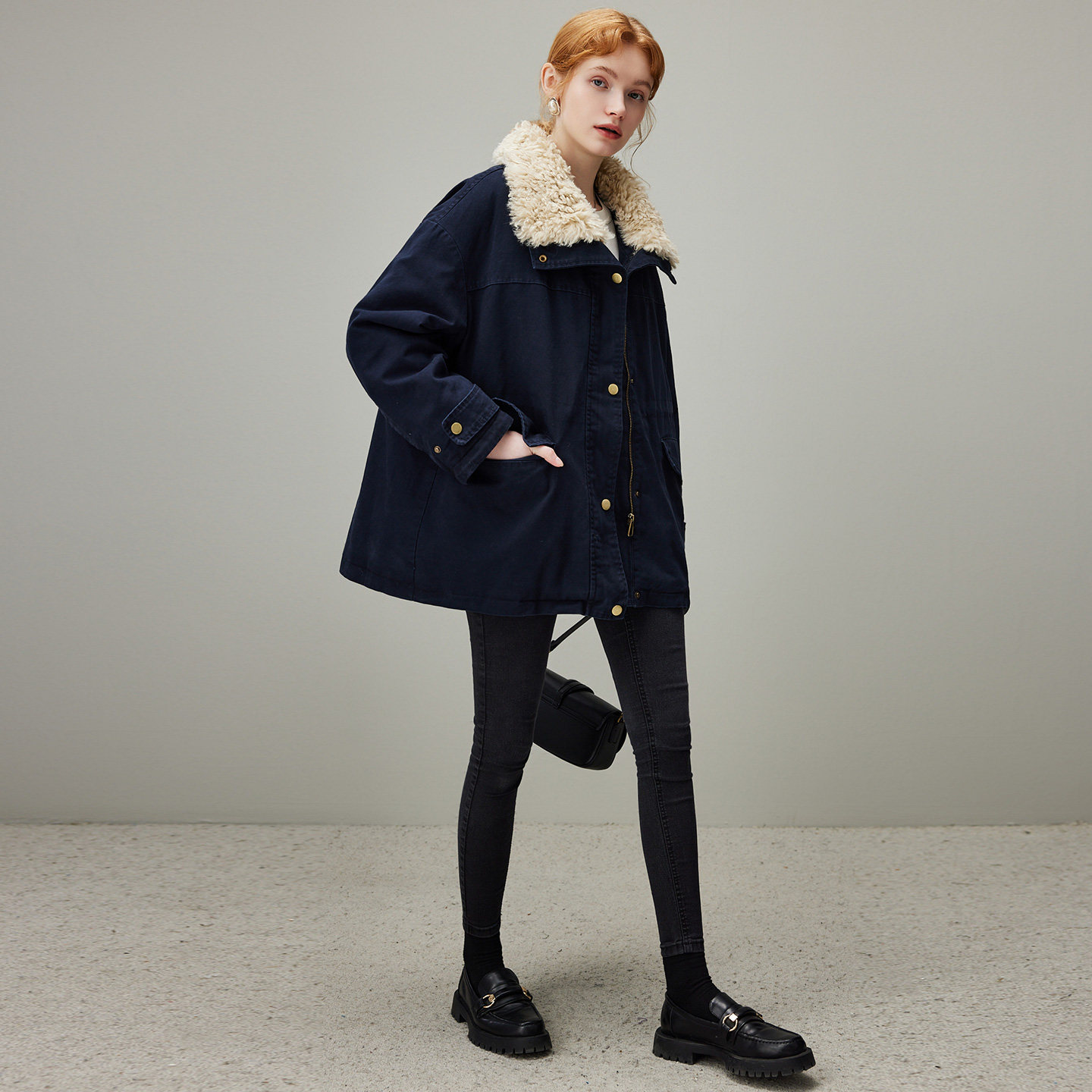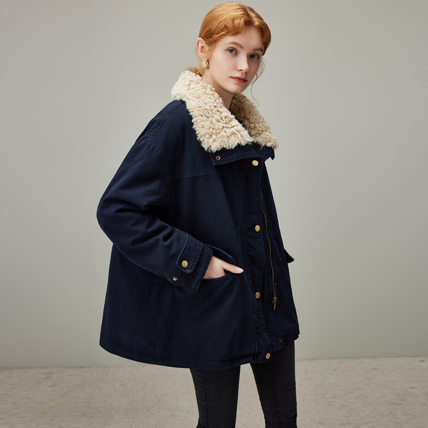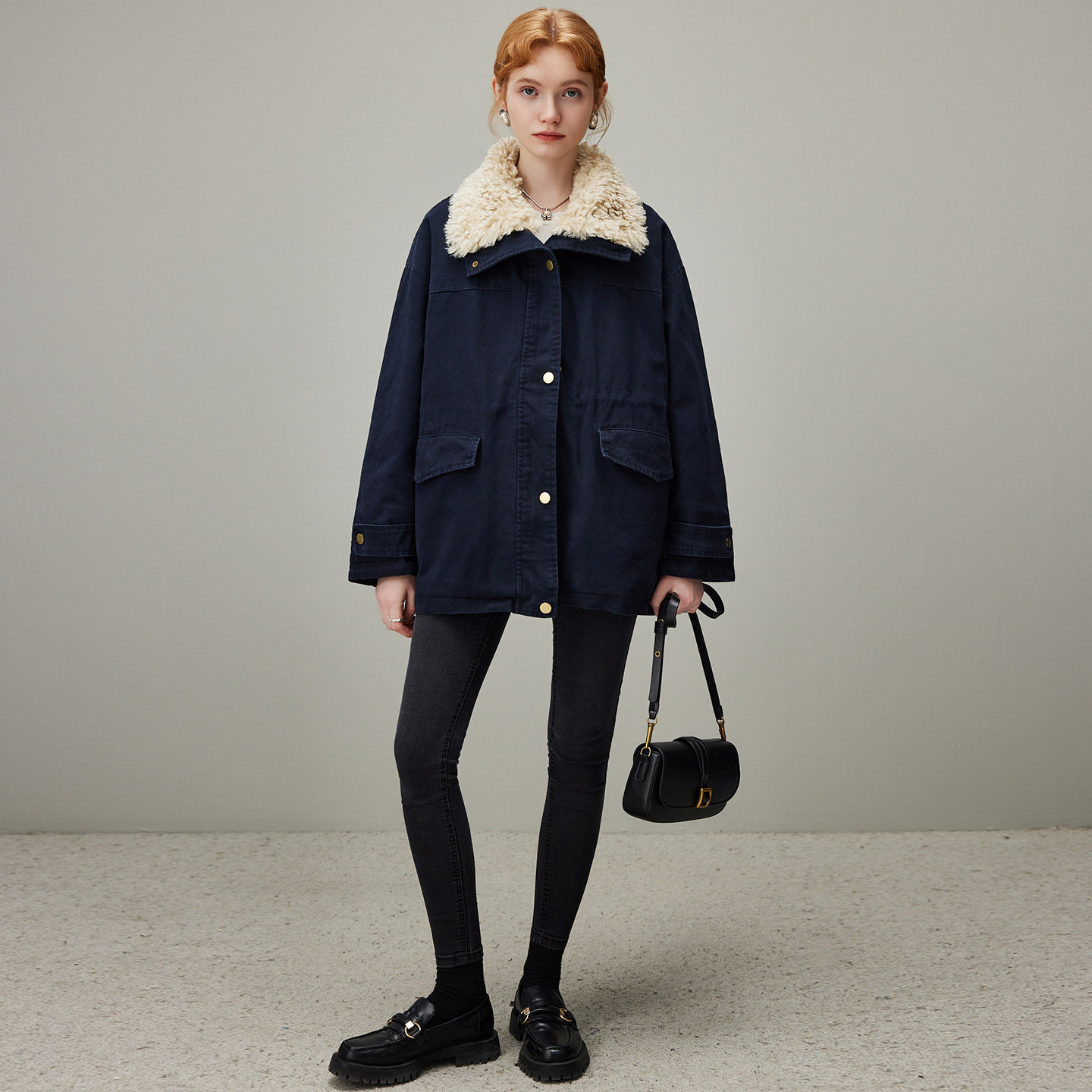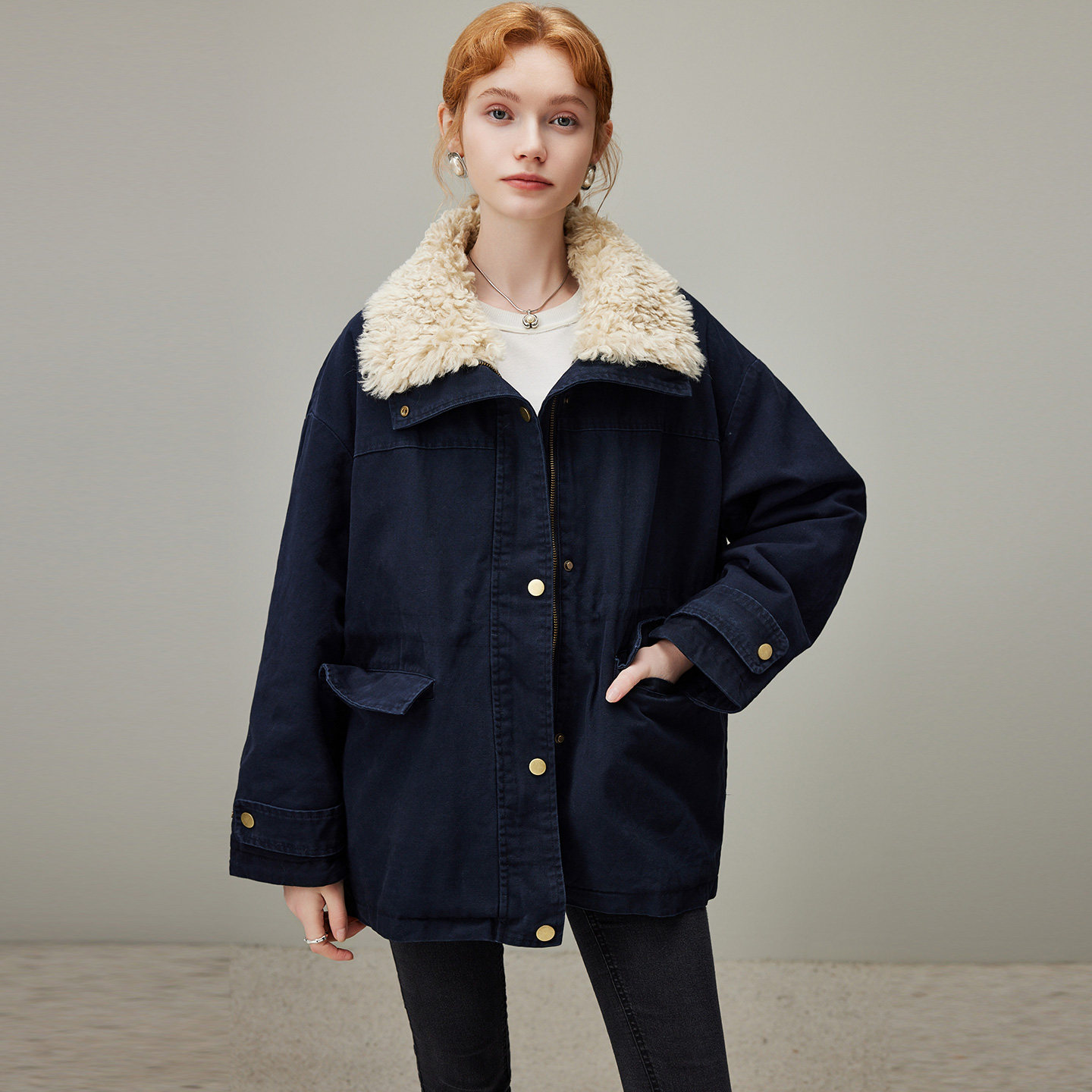 仿羊羔毛翻领宽松保暖外套 新款 dfvc复古休闲短款 外套女2025年冬季