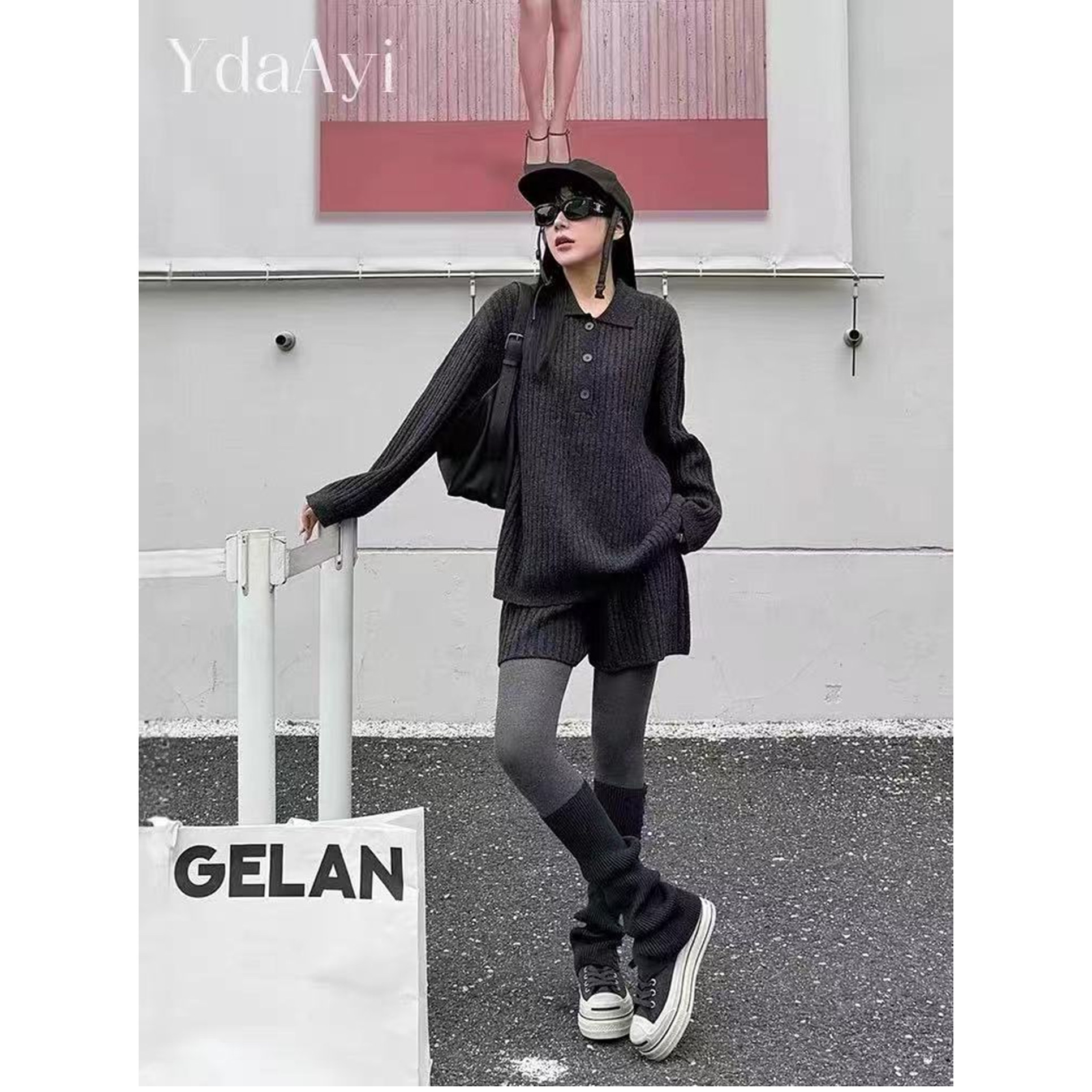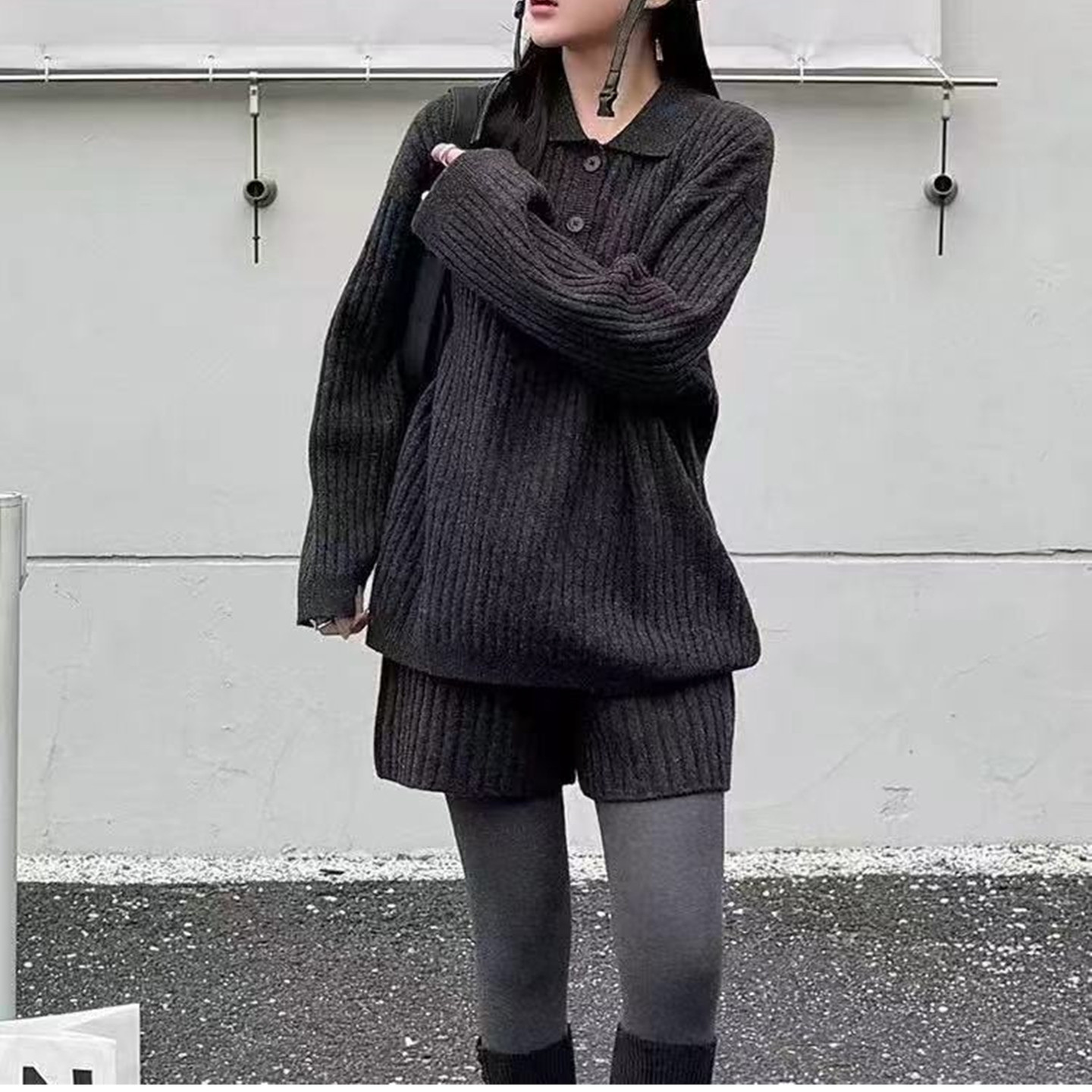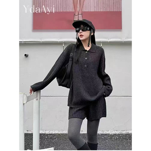 套装 欧洲站2025秋冬新款 针织短裤 休闲POLO领套头羊毛毛衣 女时尚