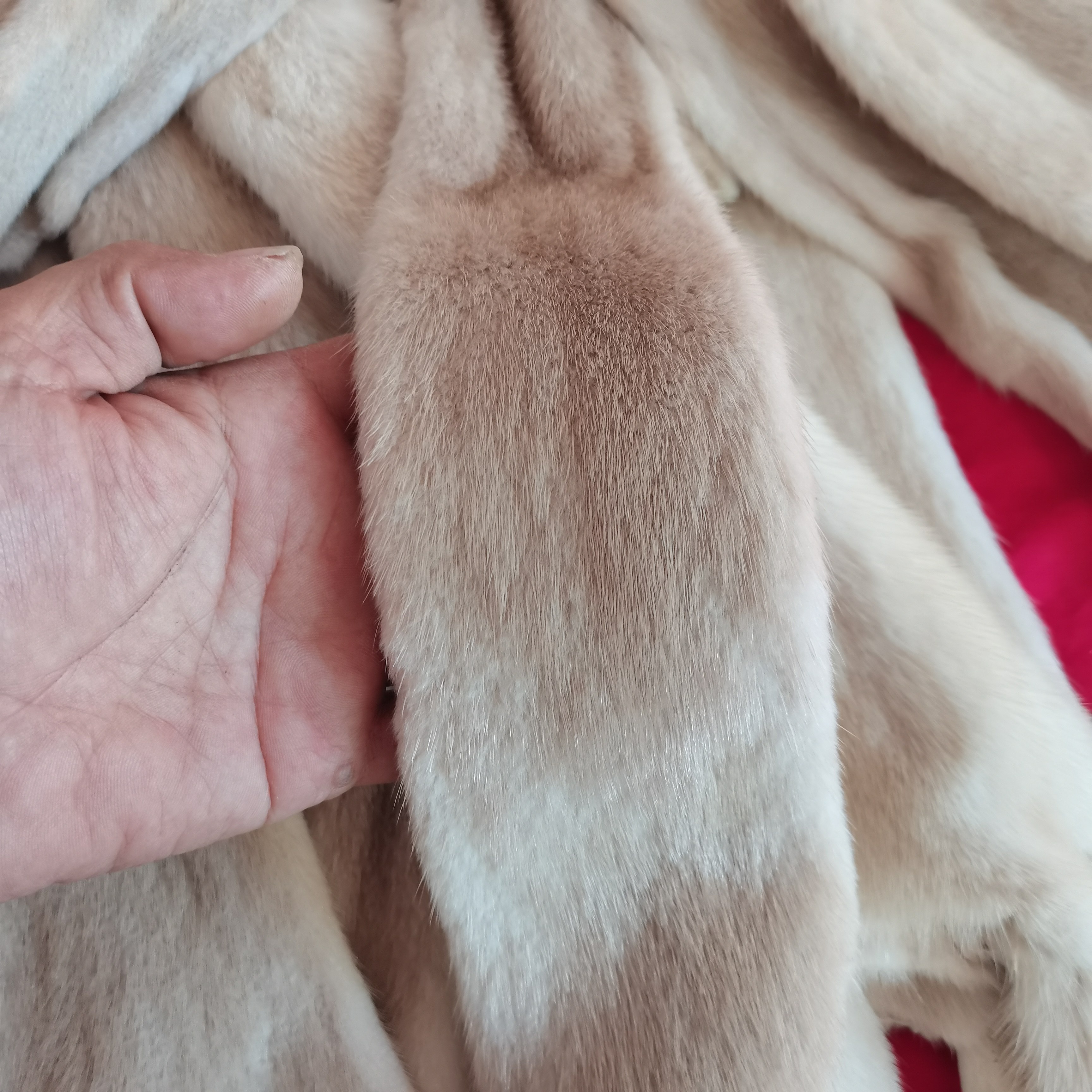 珍珠色整张微残次水貂皮原料手工皮料修补服装 内胆围脖护膝皮貂毛
