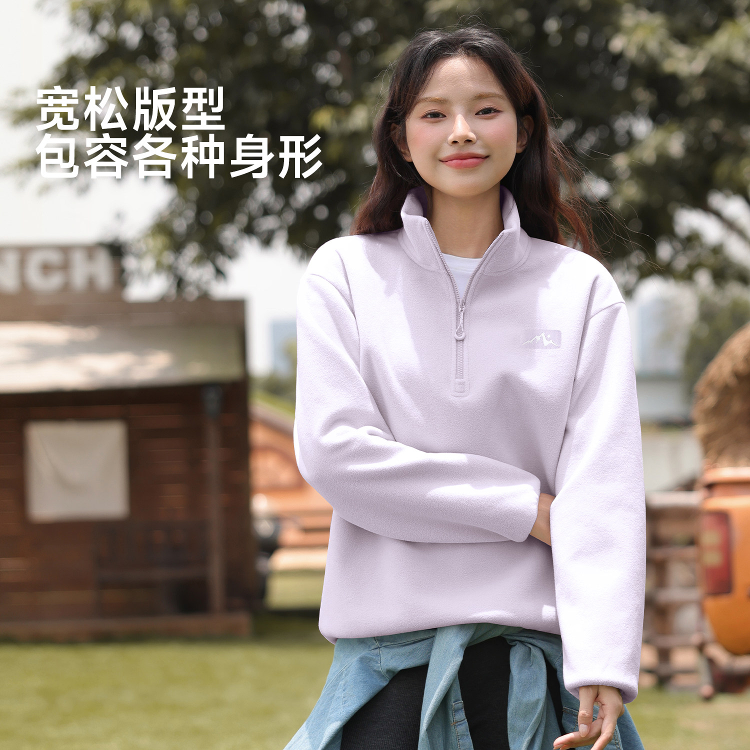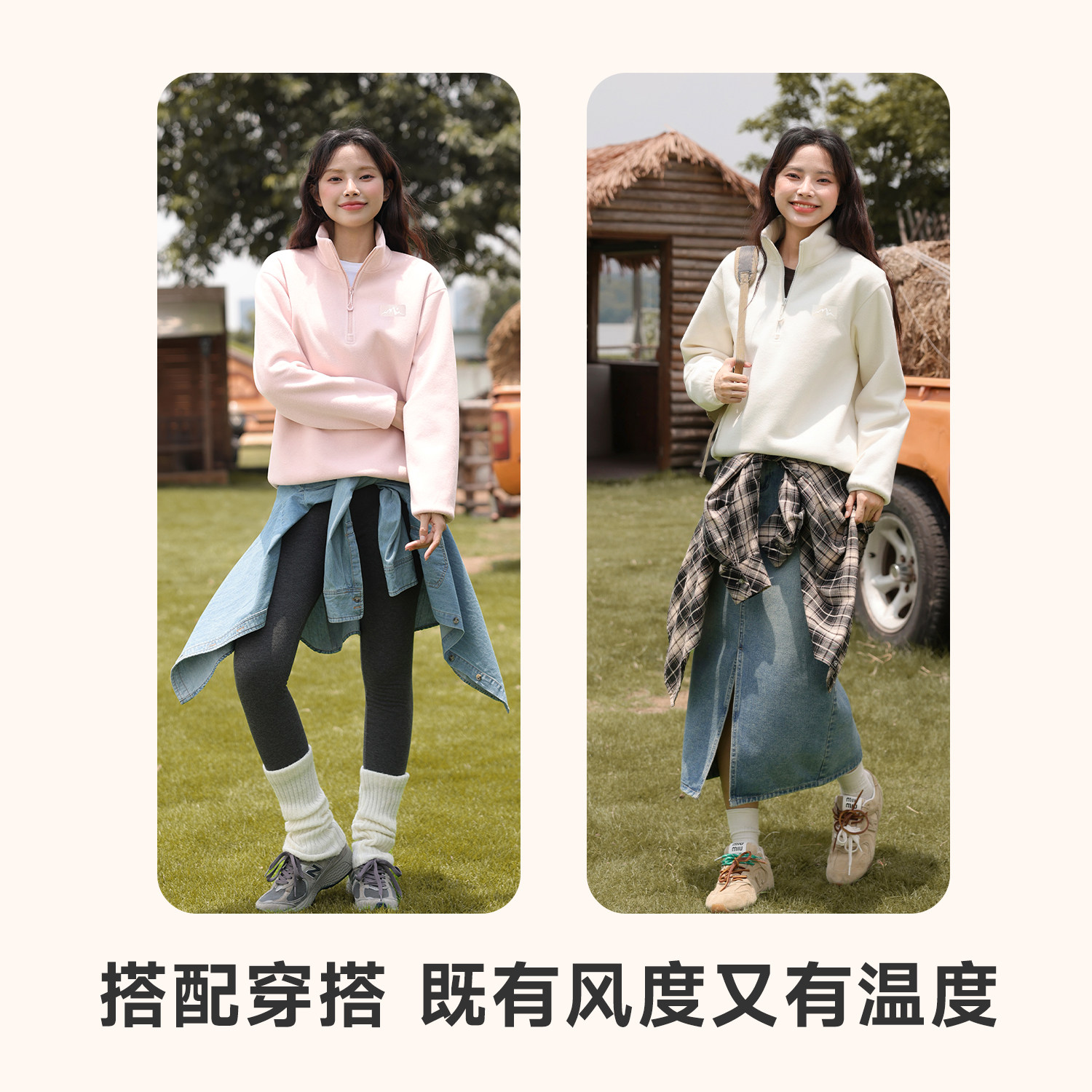 班尼路粉色摇粒绒卫衣女2025秋冬新款 保暖宽松半拉链立领上衣女Q