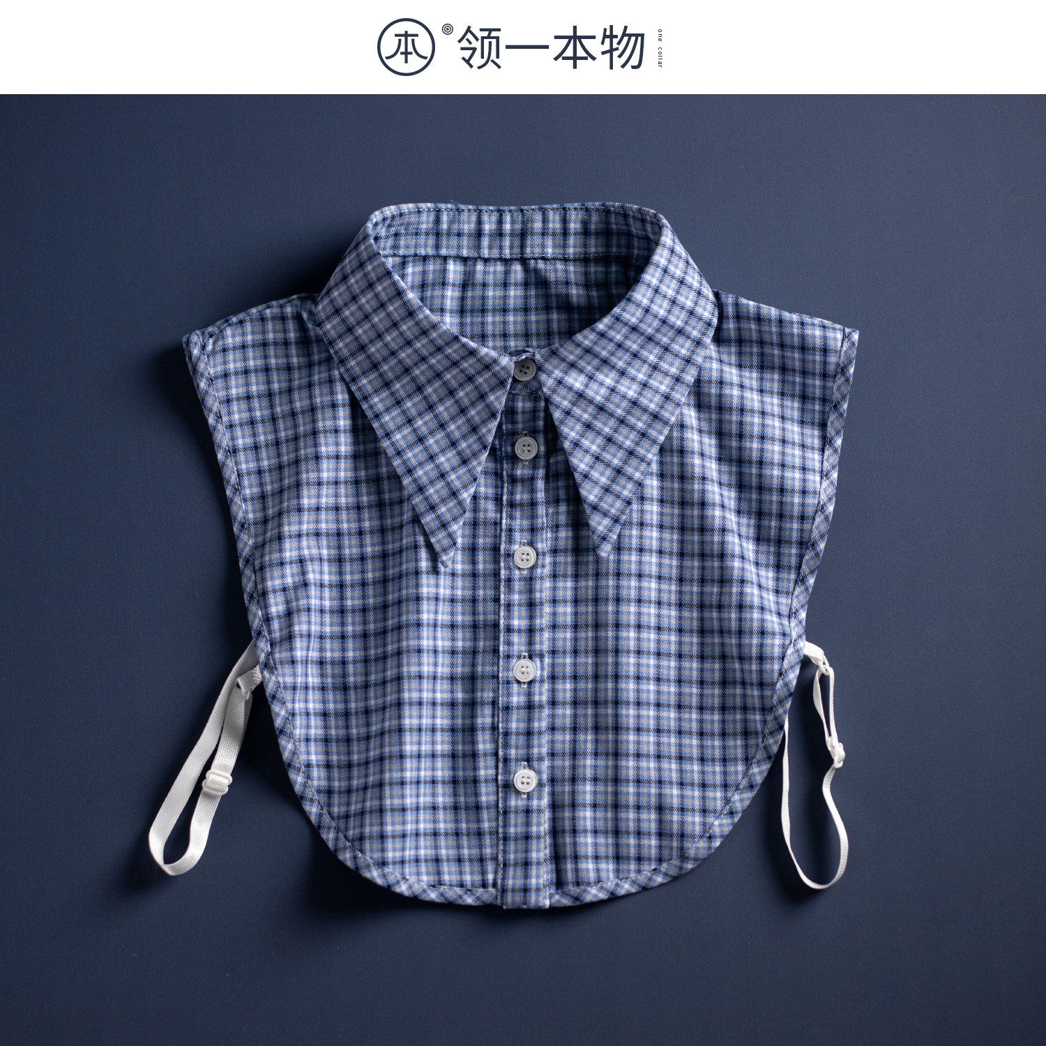 饰领 领学院风休息装 领一本物新款 纯棉格子假领子女百搭假衣领衬衫