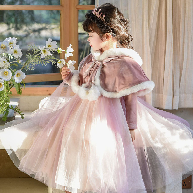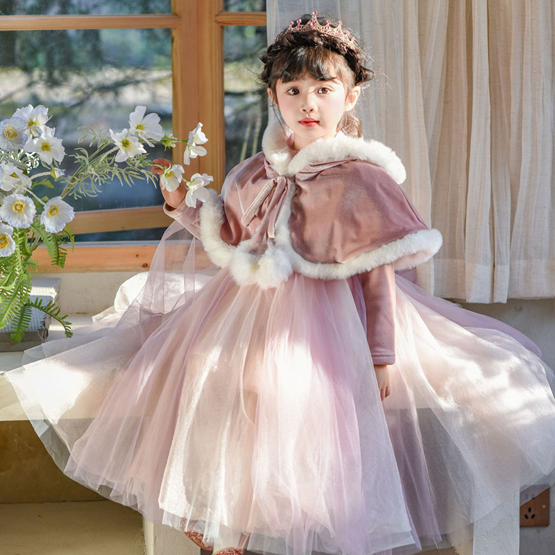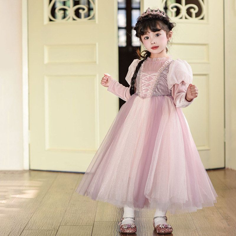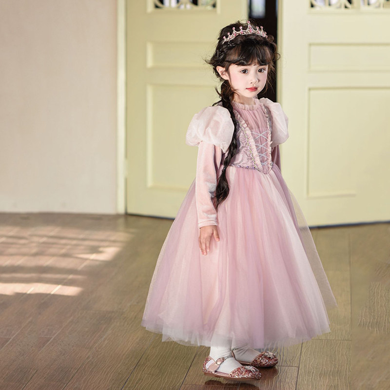 长发公主裙女童秋冬新款 乐佩粉色连衣裙子蓬蓬纱儿童高端生日礼服
