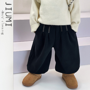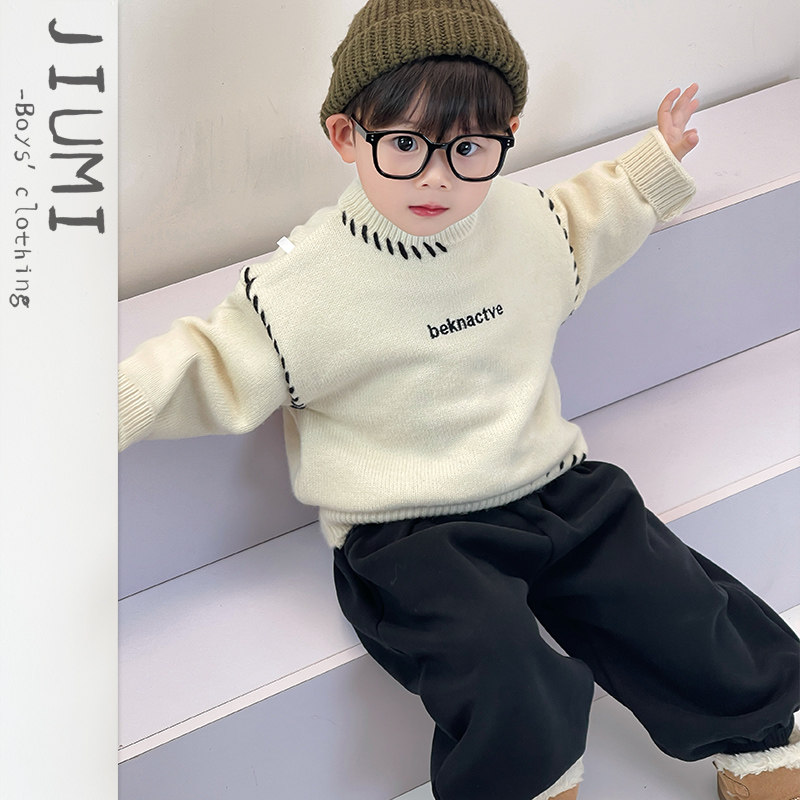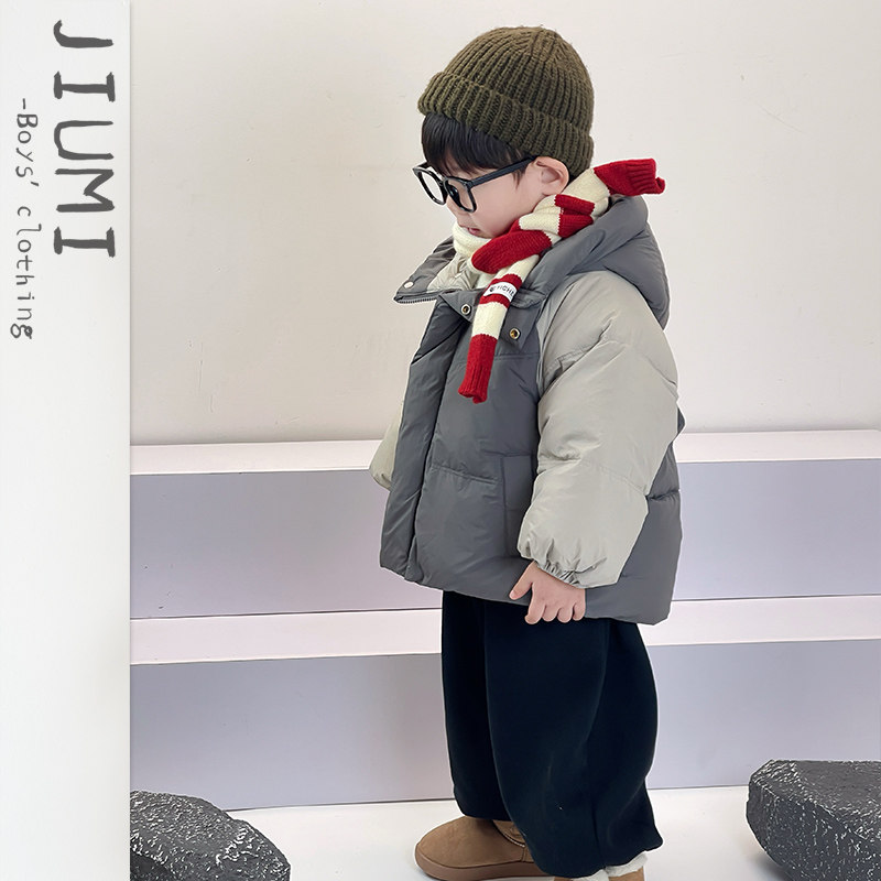 男童保暖白鸭绒外套 男宝加绒宽松长裤 儿童冬季 拼色连帽羽绒服套装