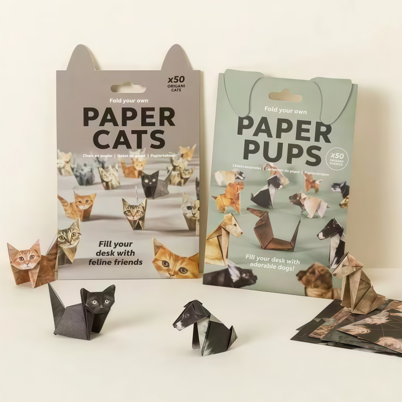 创意diy半成品几何折纸猫和狗儿童手工折叠动物折纸多款 小猫小狗