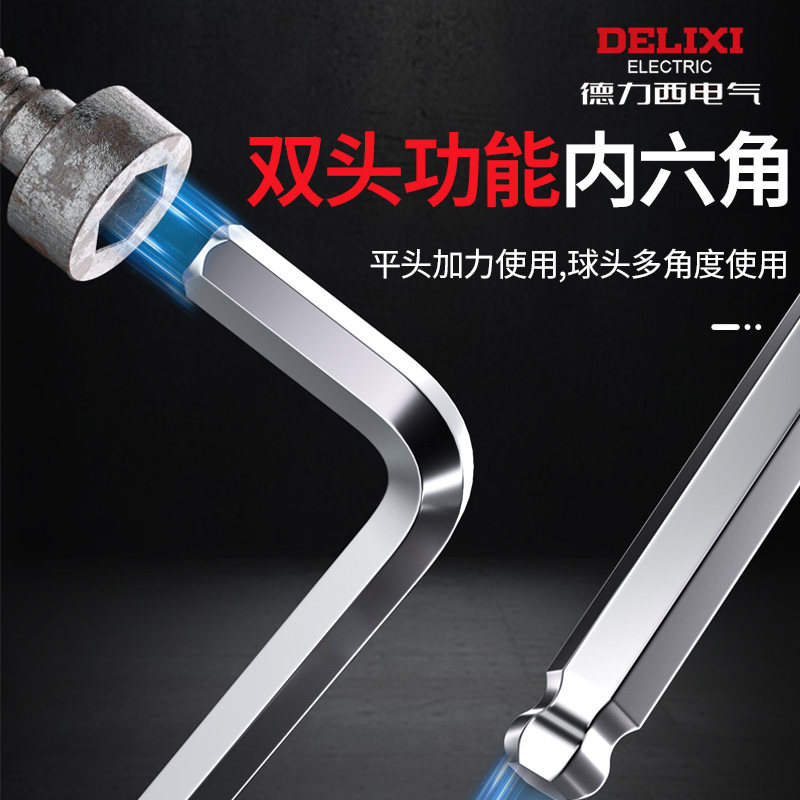 德力西电气内六角扳手套装 六棱六角六方螺丝刀加长小内6角匙工具