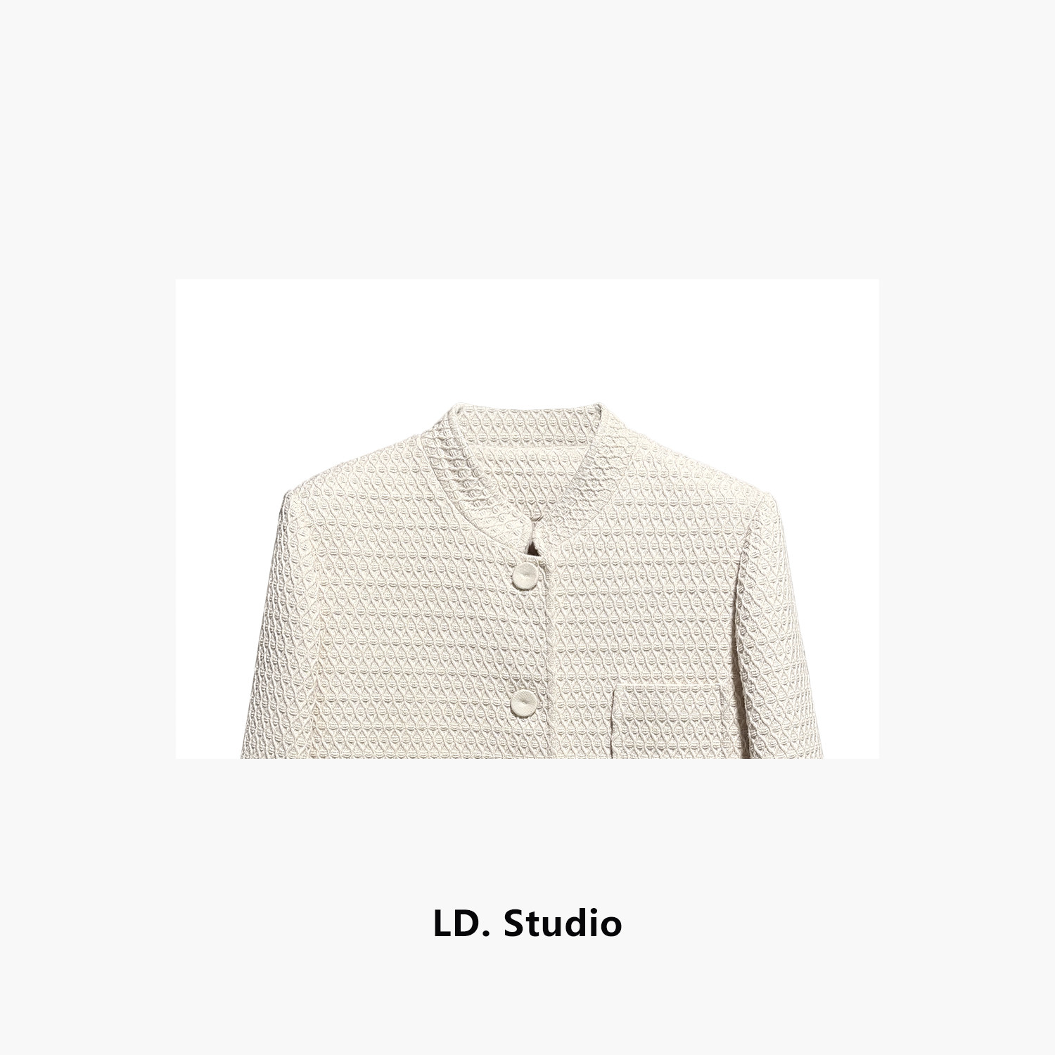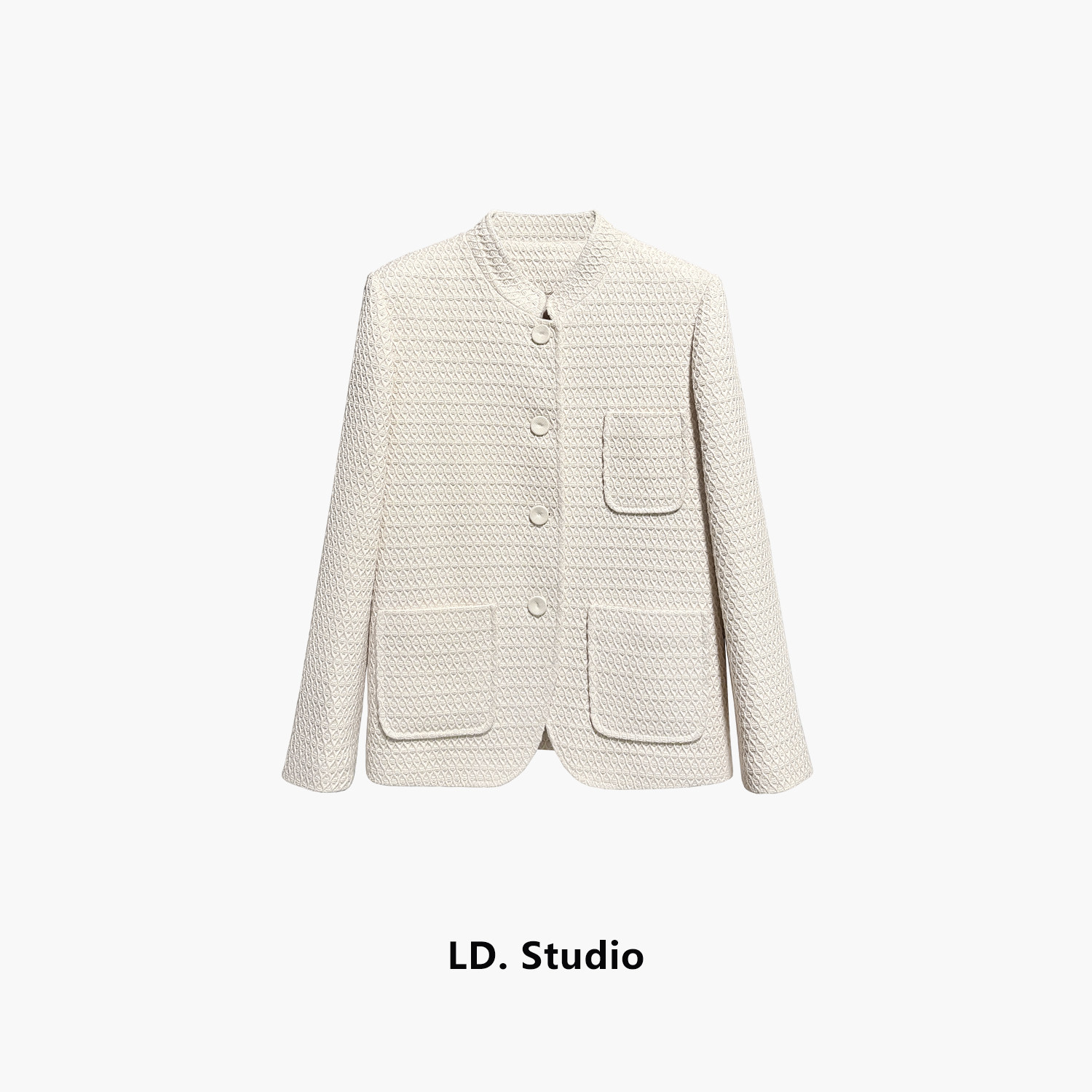 混纺立裁挺括新中式 立领排扣短外套女多口袋设计正肩百搭气质外套