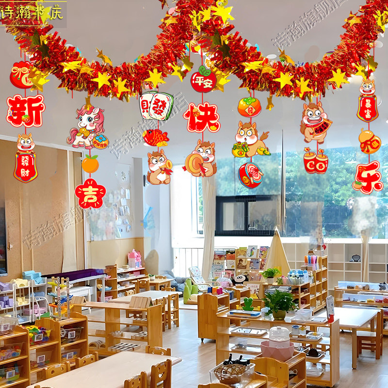 新年拉花2026马年元 饰挂件新年春节教室场景布置班级 旦挂饰新春装