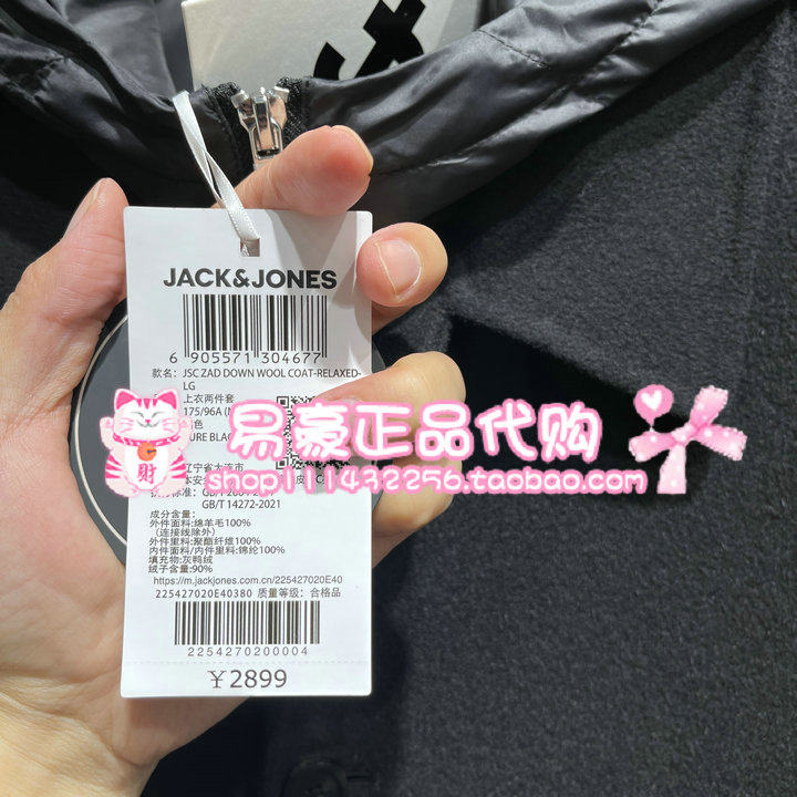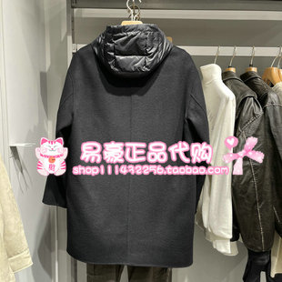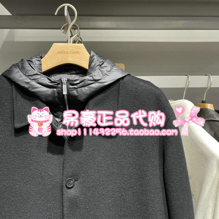 E40 225427020 杰克琼斯男毛呢大衣马甲内里羊毛连帽长款 外套