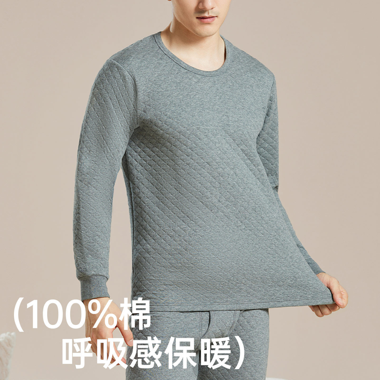 冬季 空气棉夹层抗寒纯棉秋衣秋裤 男士 俞兆林加厚三层保暖内衣套装