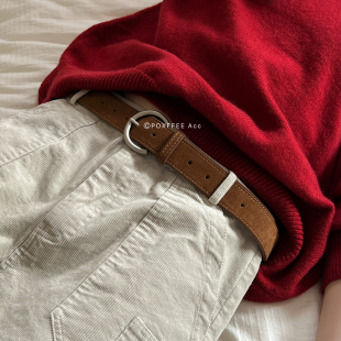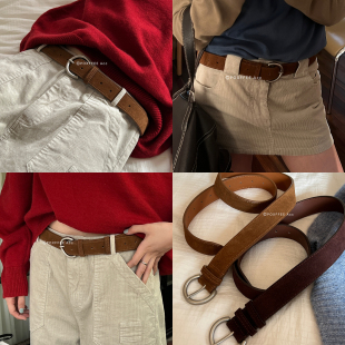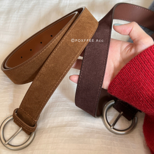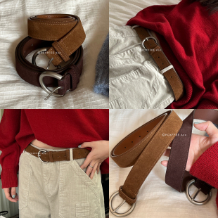 复古美拉德棕色腰带女秋冬新款 小众磨砂麂皮绒面宽皮带高级感配饰