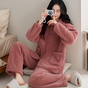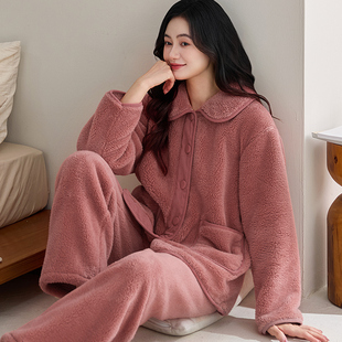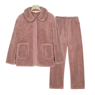 大码 珊瑚绒睡衣女士中老年妈妈装 加绒加厚家居服 新款 2025秋冬季