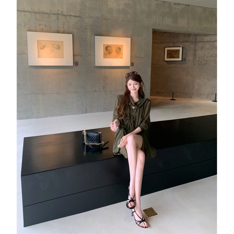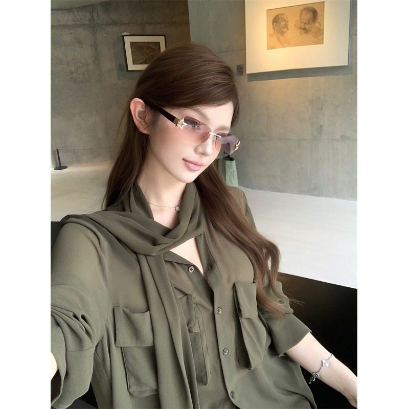 超仙上衣 女秋高级感超出片显瘦薄款 性感纯欲绿色飘带长袖 雪纺衬衫