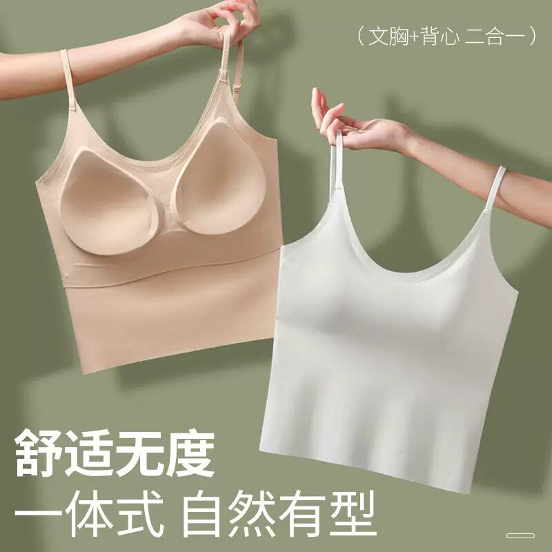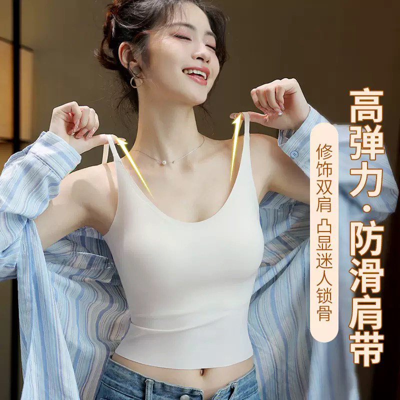平胸小胸吊带内衣女聚拢内搭美背加厚固定杯粉底液隐形打底背心春