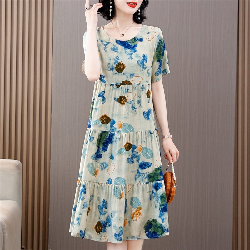 连衣裙梨形宽松长袖 棉麻纹理气质法式 小众裙子 灰烬无响 aaaaxbbb