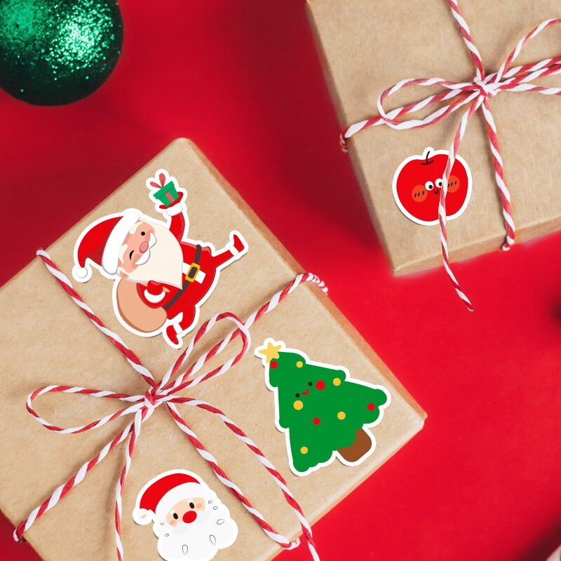 圣诞老人贴纸可爱卡通麋鹿雪花手账圣诞节小贴画平安夜礼物圣诞包装 饰防水创意自粘不干胶标签贴 封口贴节日装