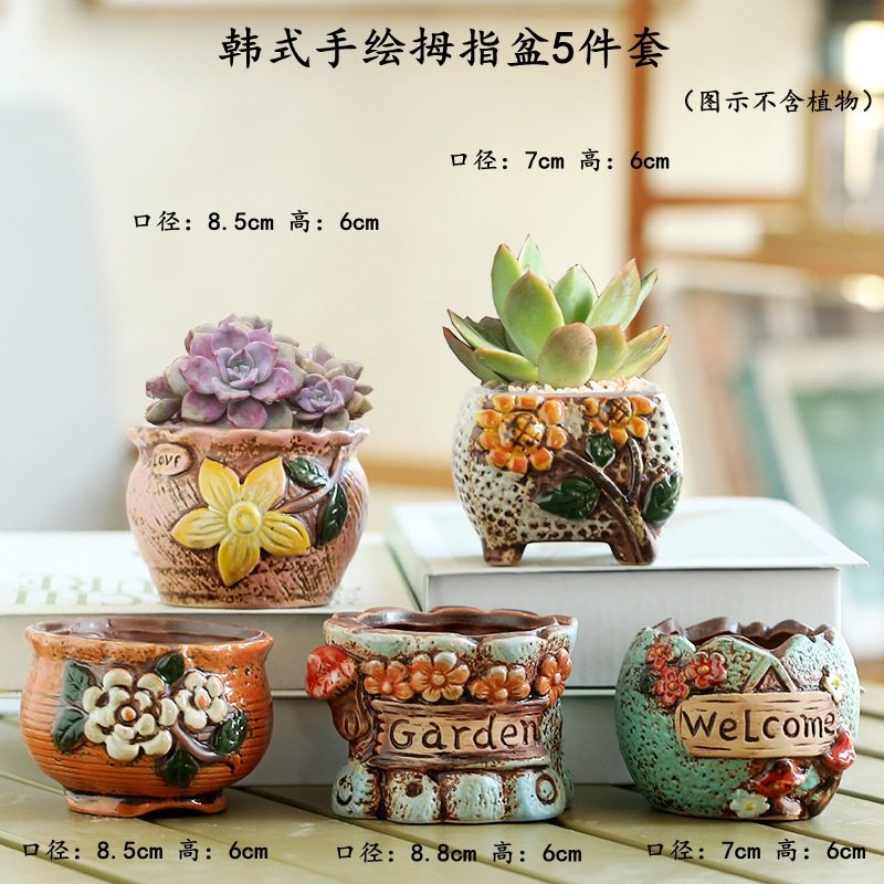 红陶多肉植物陶瓷花盆桌面泥瓦盆国际盆绿植花卉盆栽组合套装 包邮