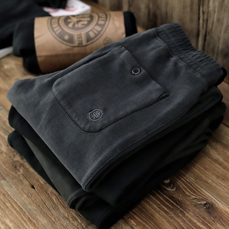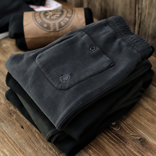 休闲收口束脚卫裤 复古做旧抽绳秋冬加绒运动裤 男 男美式 纯棉针织裤
