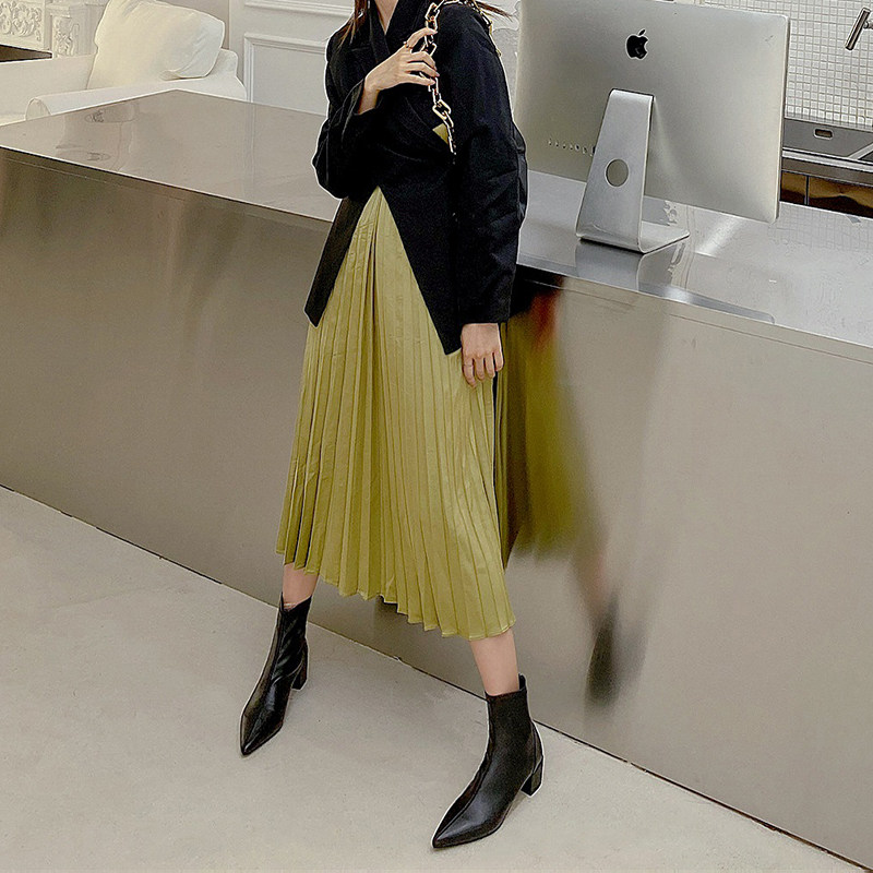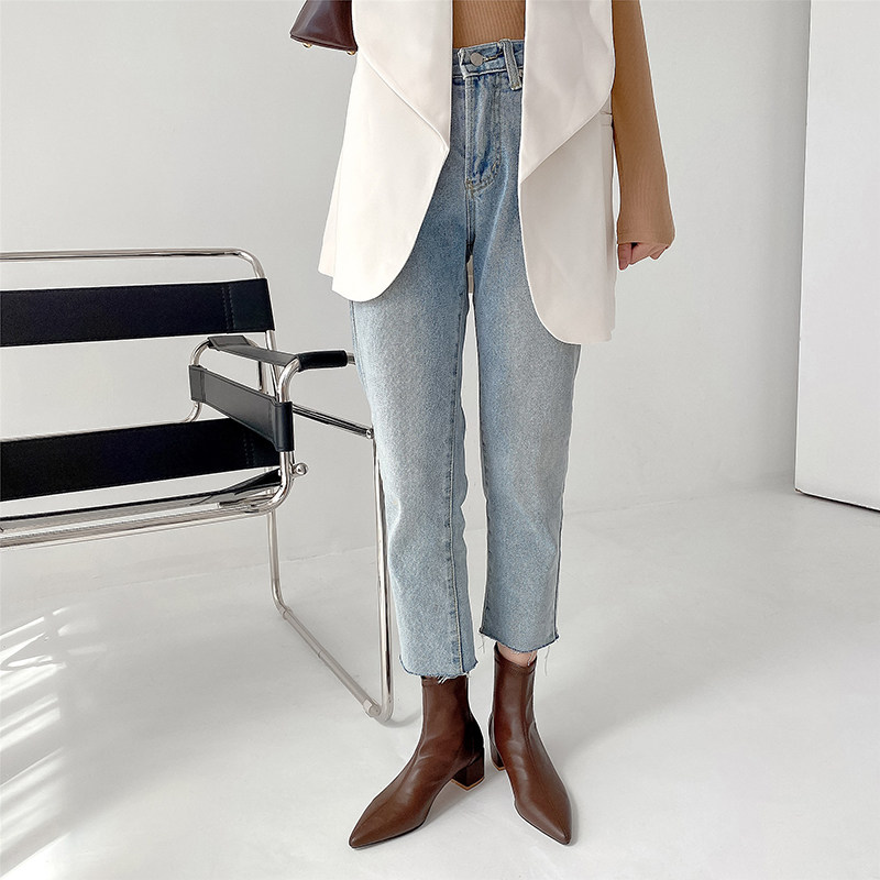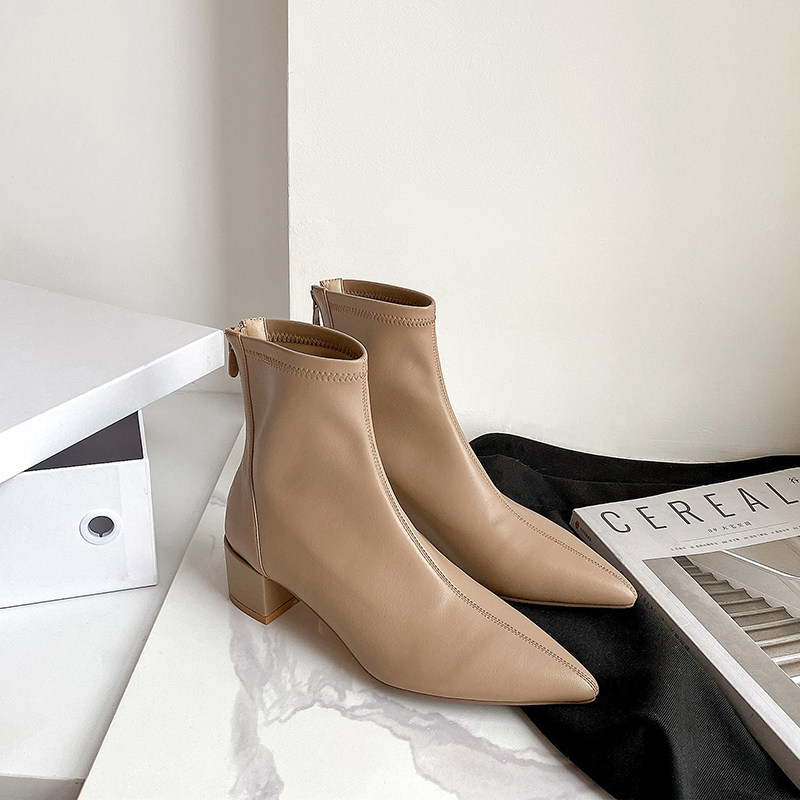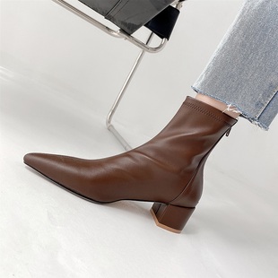 2021新款 气质女短靴单靴 秋冬极简百搭显瘦尖头粗跟弹力瘦瘦靴时尚