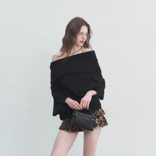 七分袖 SPEAR 羊毛驳纹一字肩不规则针织衫 柏林迷雾 毛衣 YOUTH