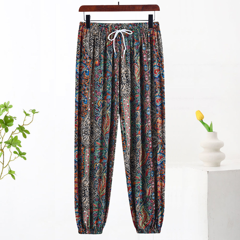 高腰冰丝防蚊裤 凉凉裤 中年妈妈夏装 花色时尚 200斤束脚灯笼裤 大码