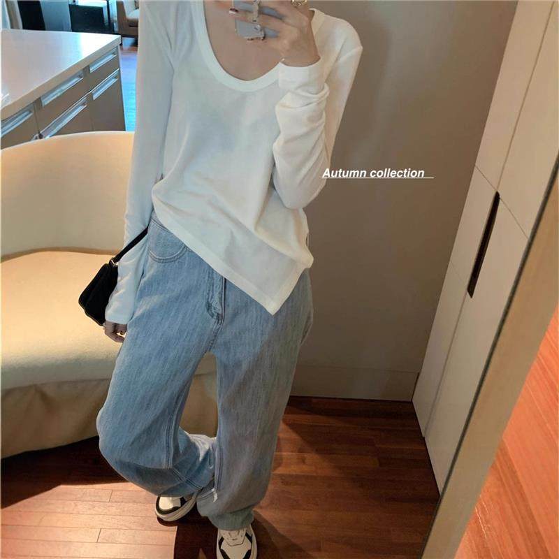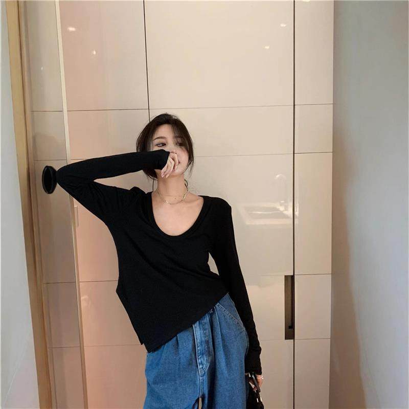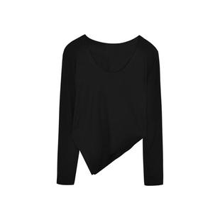 设计感学生内搭打底衫 不规则白色修身 新款 T恤女2025秋装 上衣 长袖
