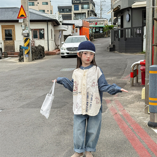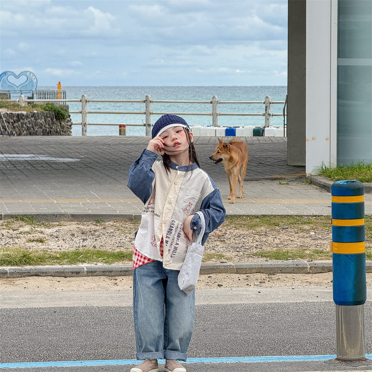 开衫 儿童韩版 男女童字母印花拼色衬衣宝宝时尚 春秋薄款 潮 刺绣衬衫