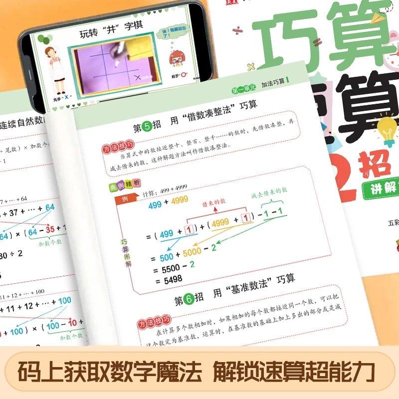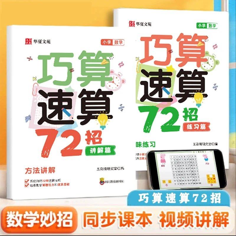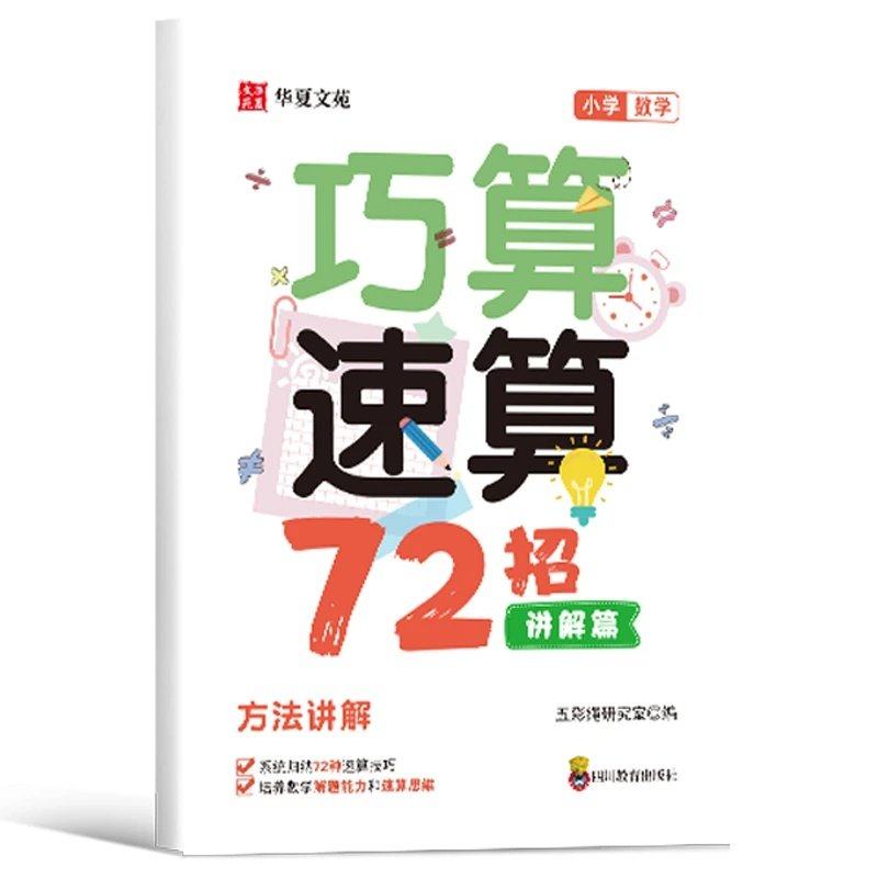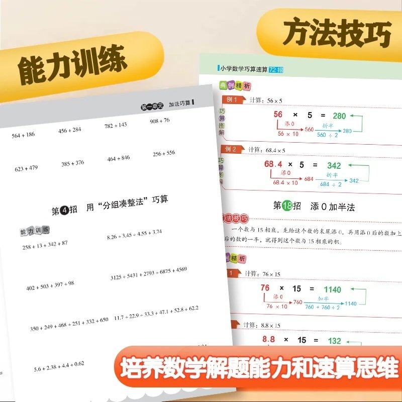 小学数学巧算速算72招正版 计算题强化训练思维训练习册数学巧算速算技巧大全书籍 小学生计算题数学学习工具孩子学习书