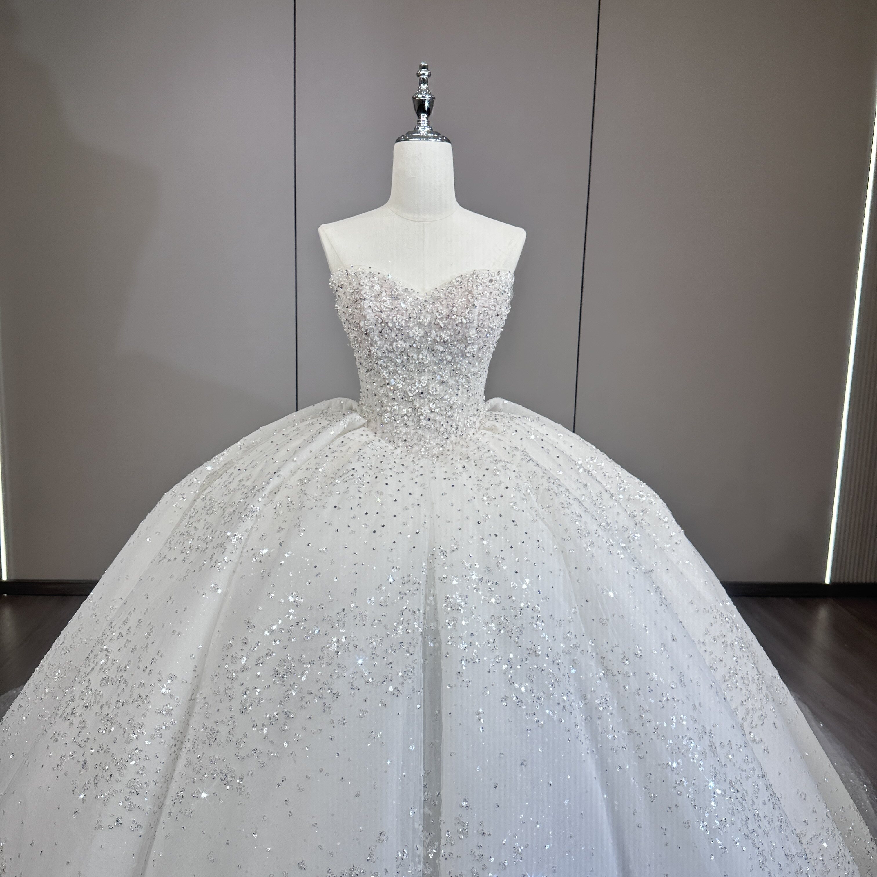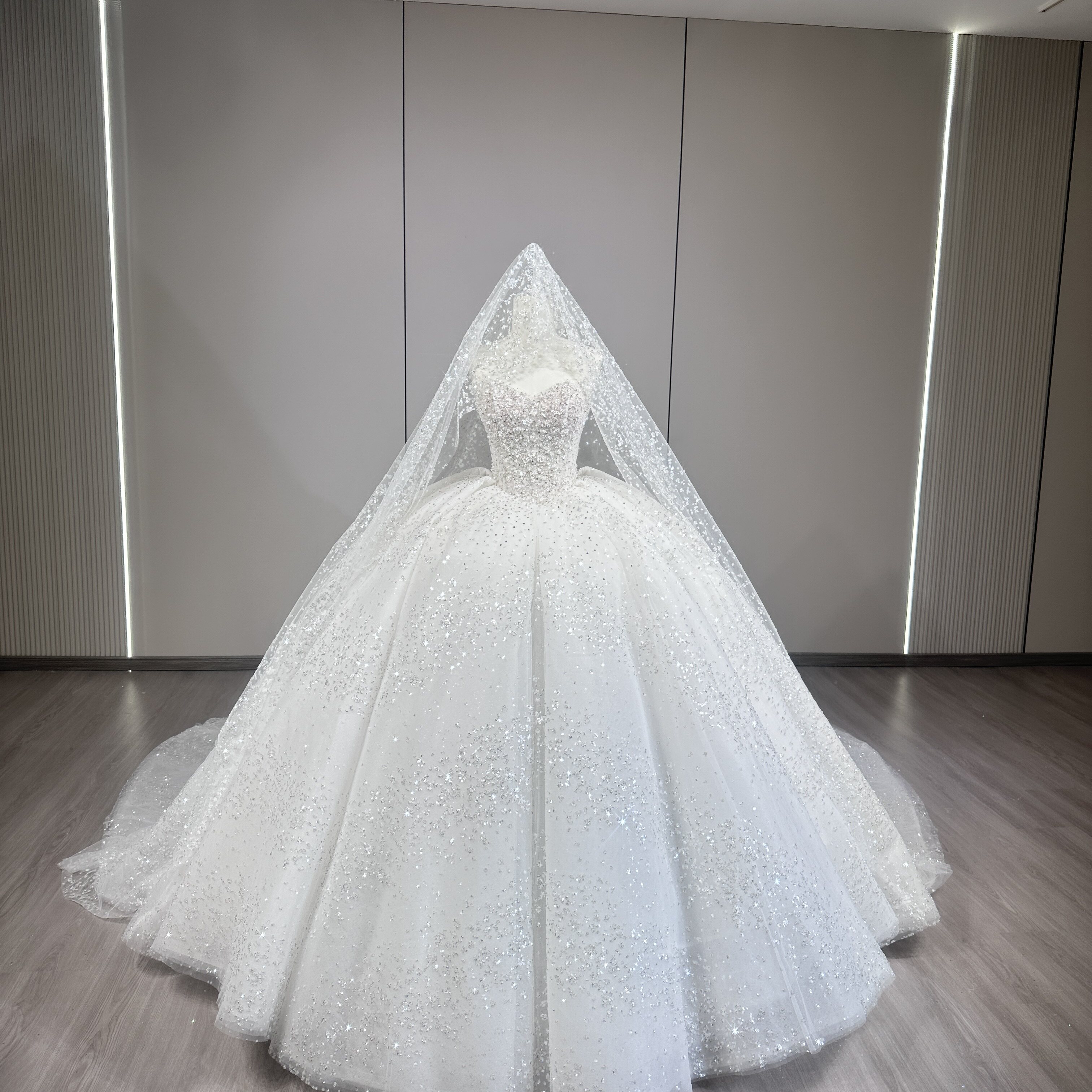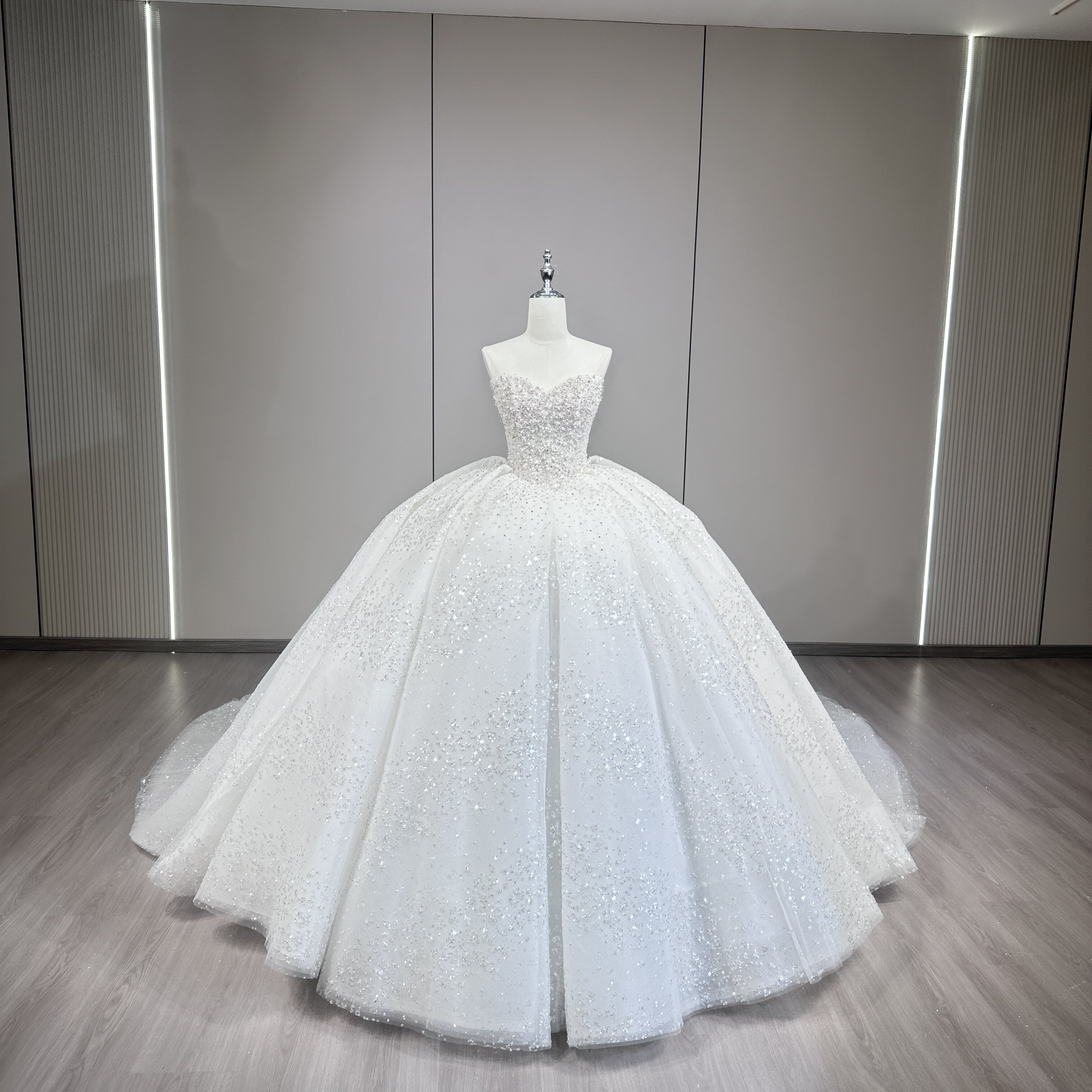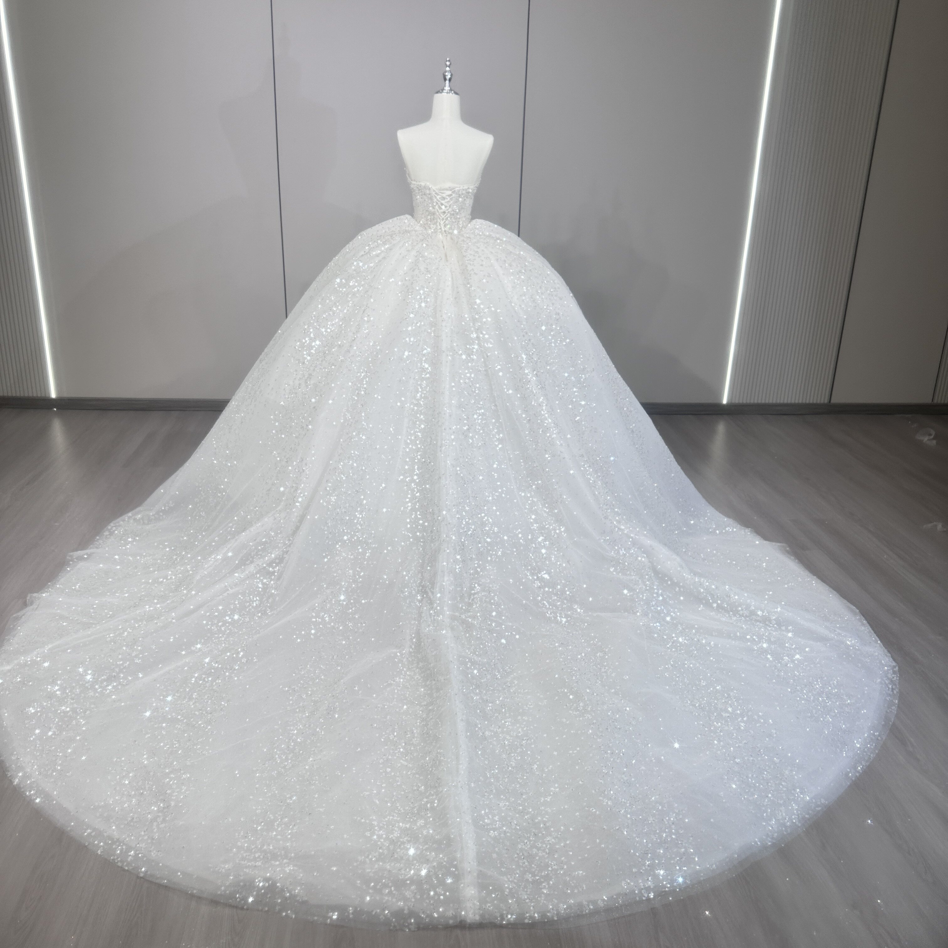 抹胸主婚纱礼服新娘2026新款 出门轻纱小个子重工高级爆闪银河星空