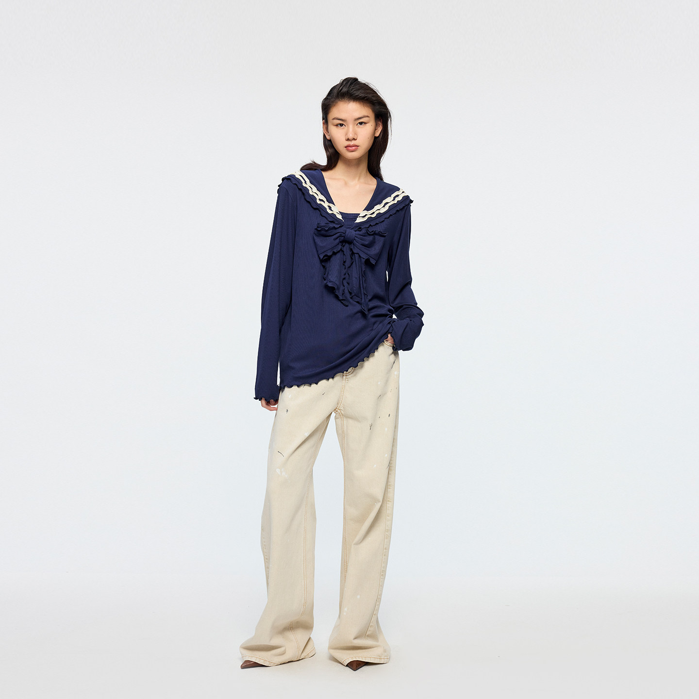 「奇幻都市」油画蝴蝶结牛仔裤 新款 乌丫2026春季 UOOYAA
