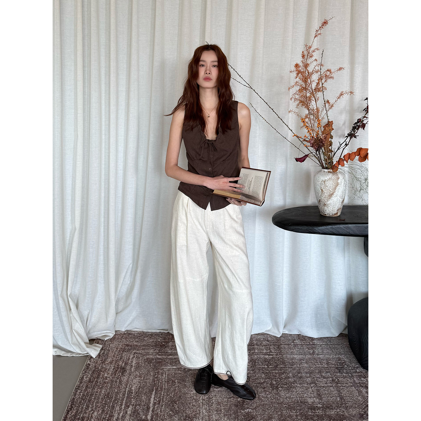休闲纯色真丝褶皱背心 26早春新品 设计师品牌 SOLSOL SENSE