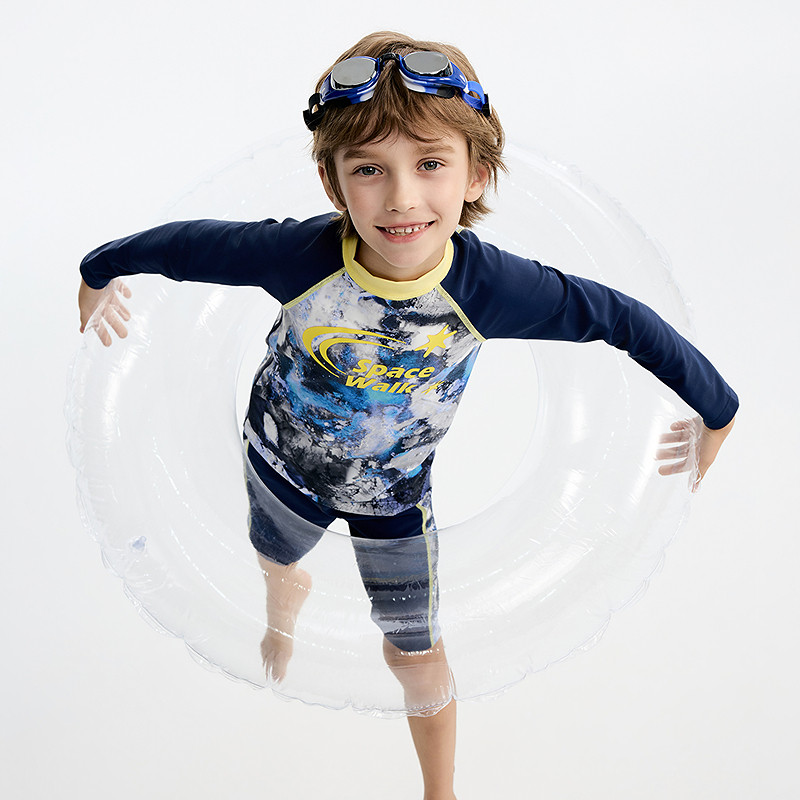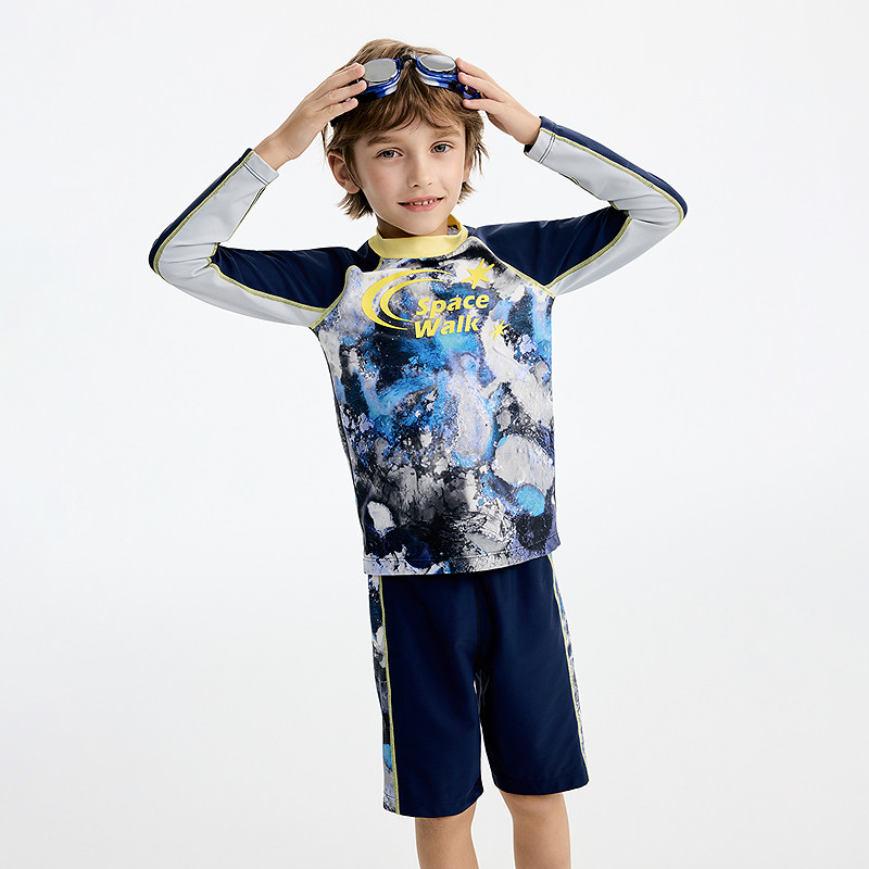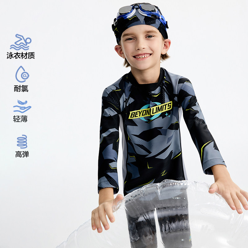爱慕儿童男孩防晒海边度假连体分身泳衣体育课游泳26新品 长袖