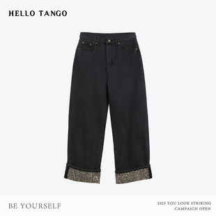 新款 落落狷介 2025年冬季 小个子刺绣阔腿裤 设计感高腰 加绒牛仔裤