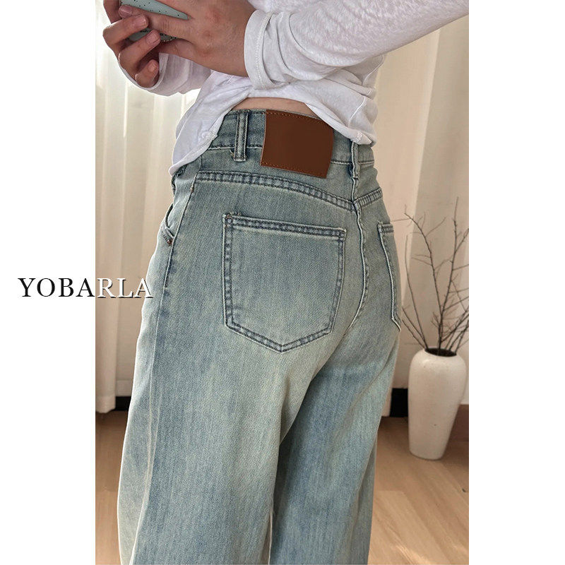 垂感显瘦设计适合梨形身材 大码 浅色高腰阔腿牛仔裤 秋季