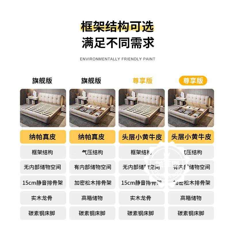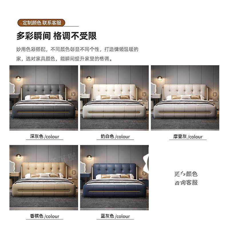 2025新款 轻奢真皮床1米8现代简约主卧高端大气双人床家用婚床 意式