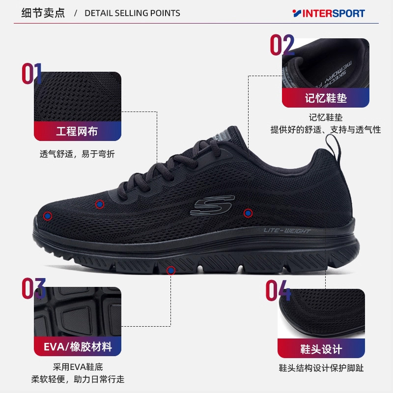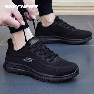 纯黑色跑鞋 跑步鞋 官方旗舰店休闲鞋 男士 斯凯奇男鞋 运动鞋 秋冬新款